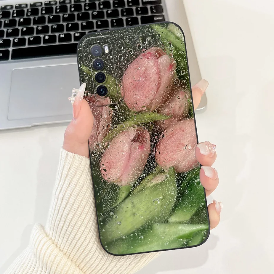Para Huawei Nova 7 Pro 5G funda JER-AN10 lindo gato patrón de rejilla cubierta suave TPU Fundas de teléfono para Huawei Nova 7 SE Nova7 Pro 5G Fundas