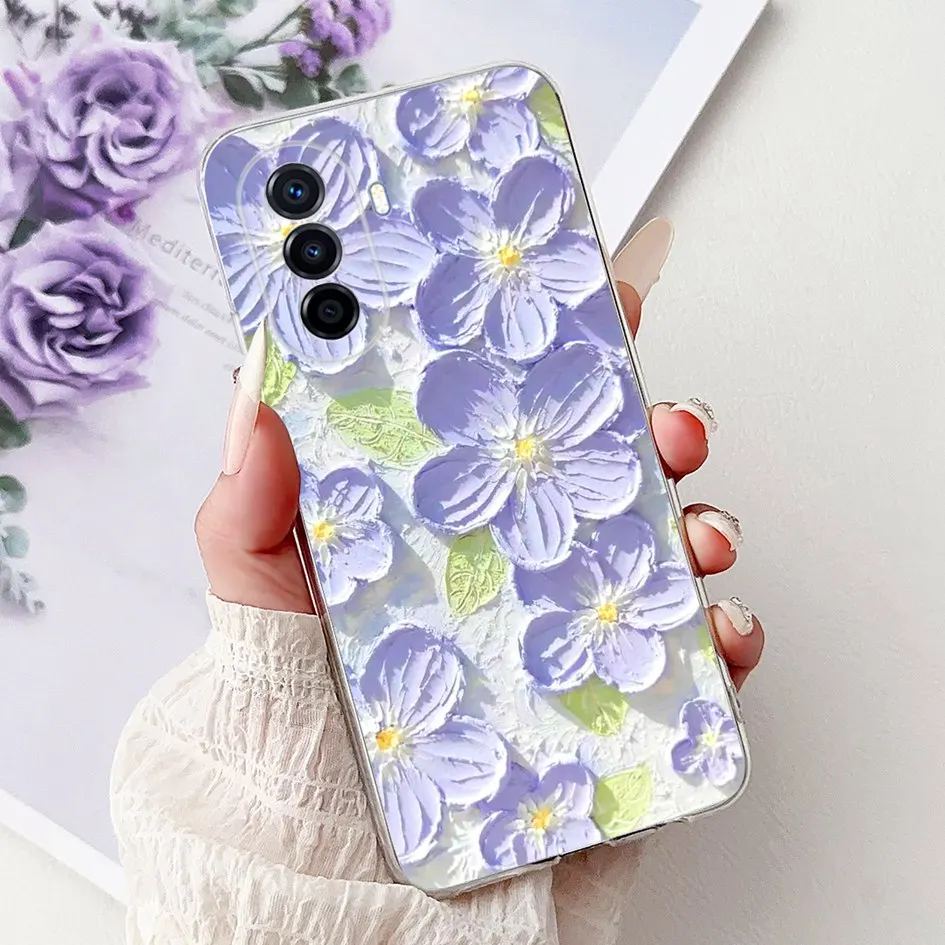 Para Huawei Nova Y70 funda NovaY70 Plus funda MGA-LX9 MGA-LX9N MGA-LX3 moda flor funda de silicona suave para Huawei Nova Y71 Capa