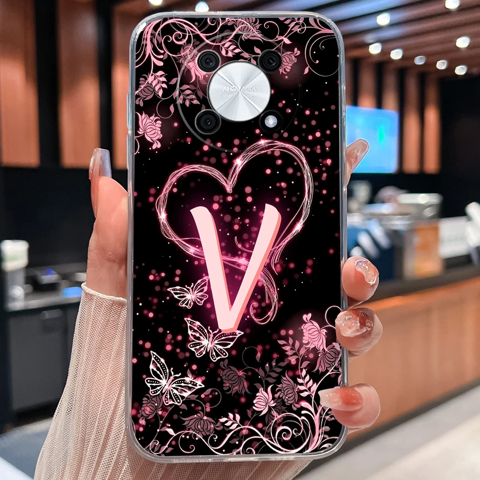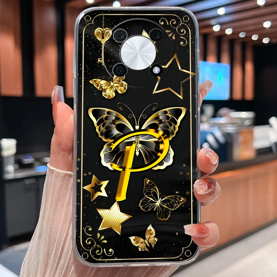 Para Huawei Nova Y90 funda de teléfono flores letras suave transparente silicona ligera funda para Huawei Nova Y 90 carcasa protectora