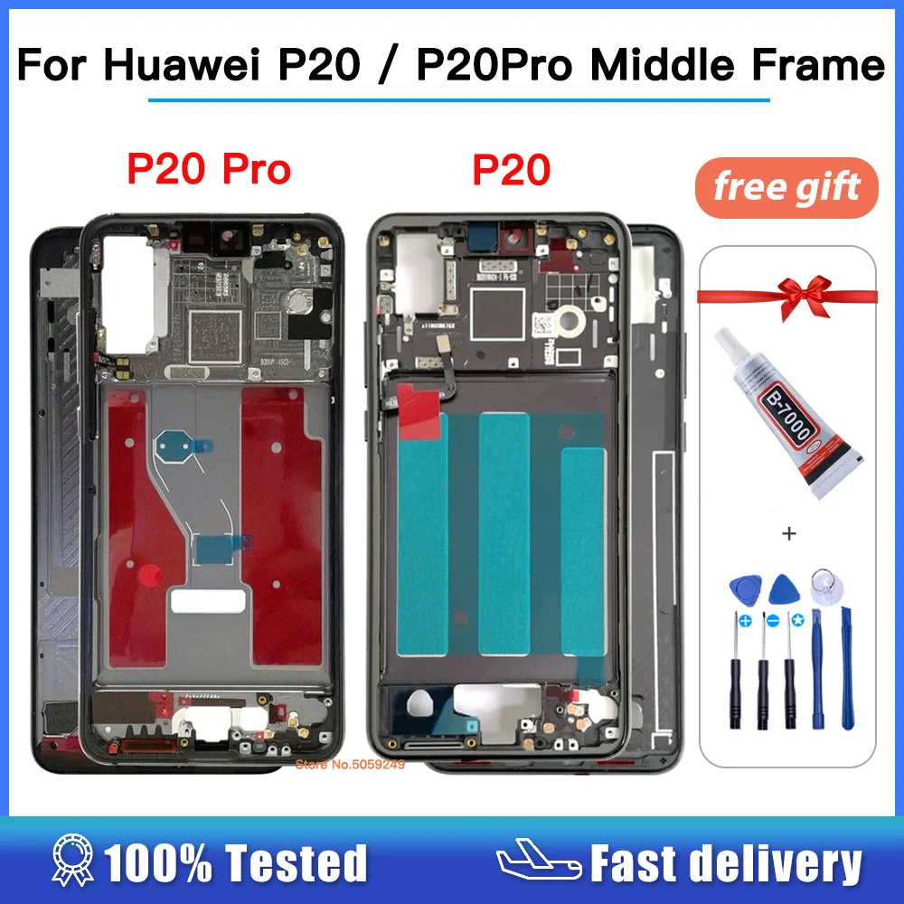 Para Huawei P20 Pro CLT-AL00 L09 L29 pantalla LCD frontal media de Metal marco de carcasa bisel chasis reemplazo reparación para Huawei P20