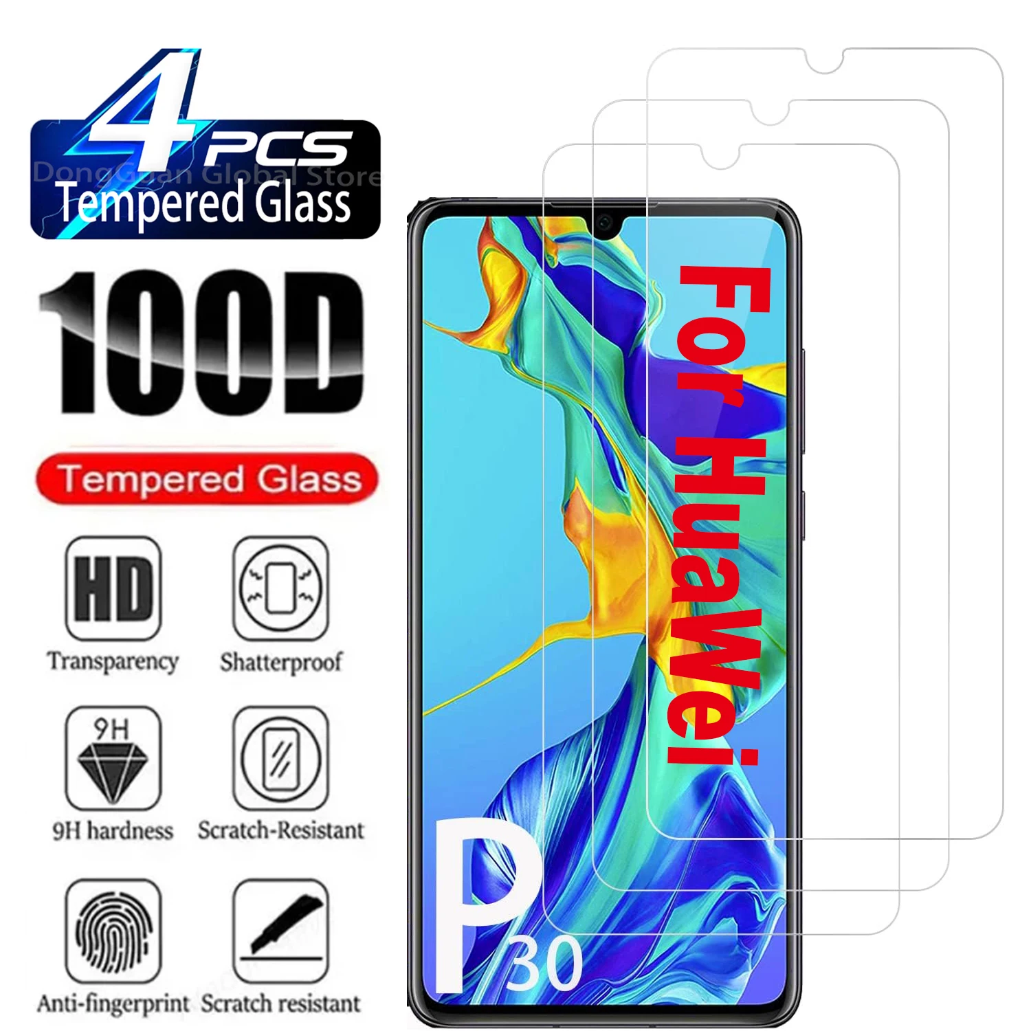 Para HuaWei P30 HD vidrio templado 2/4 Uds 9H película protectora de pantalla