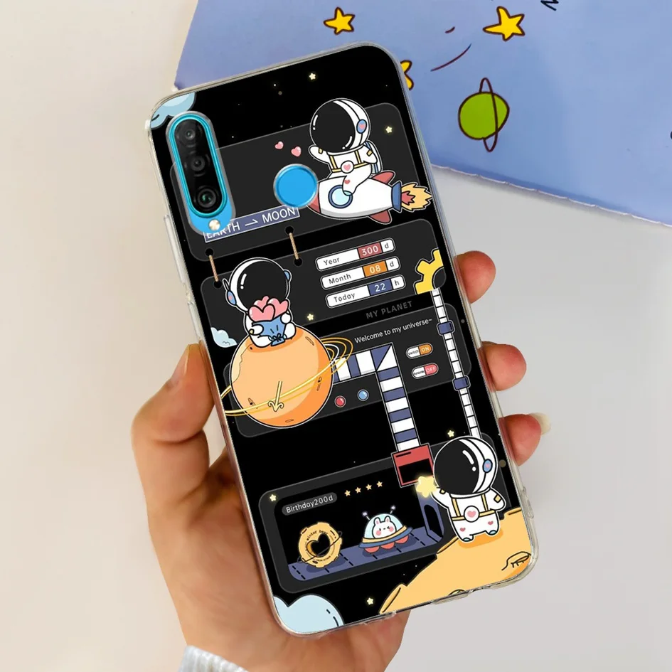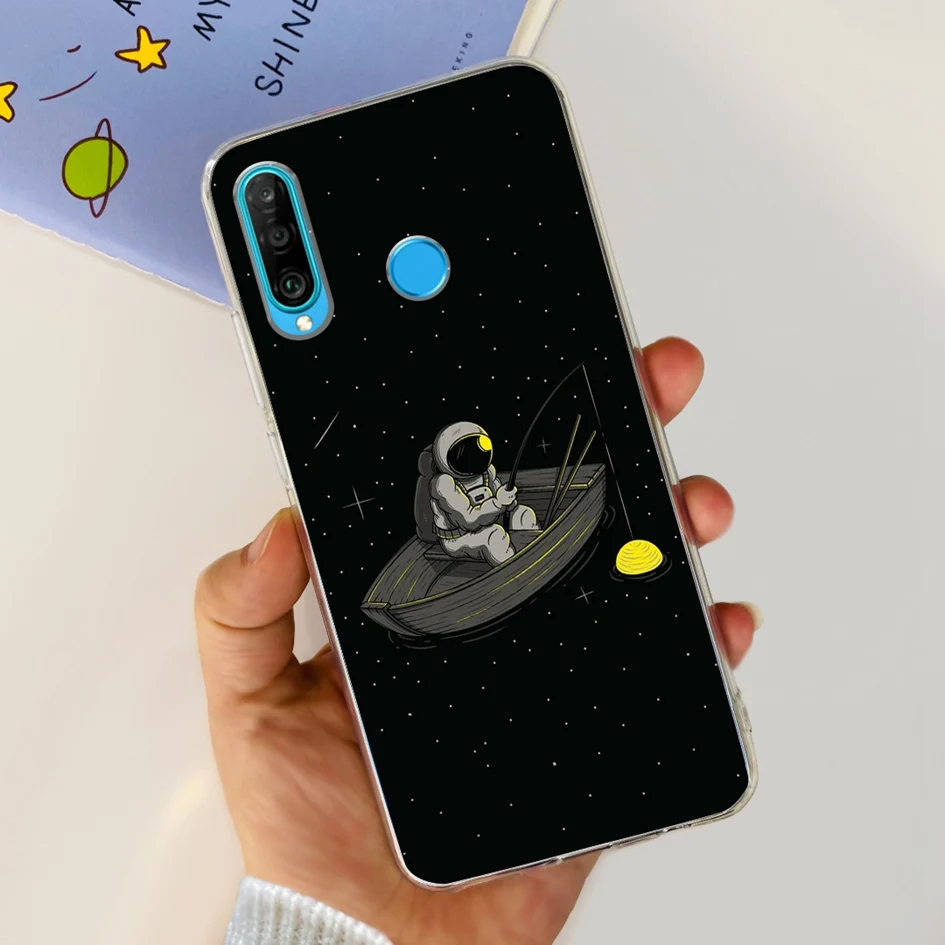Para Huawei P30 Lite funda MAR-LX1M MAR-L21A MAR-LX1A funda bonita de astronauta parachoques de silicona transparente para Huawei P30 Pro Lite P 30 Capa