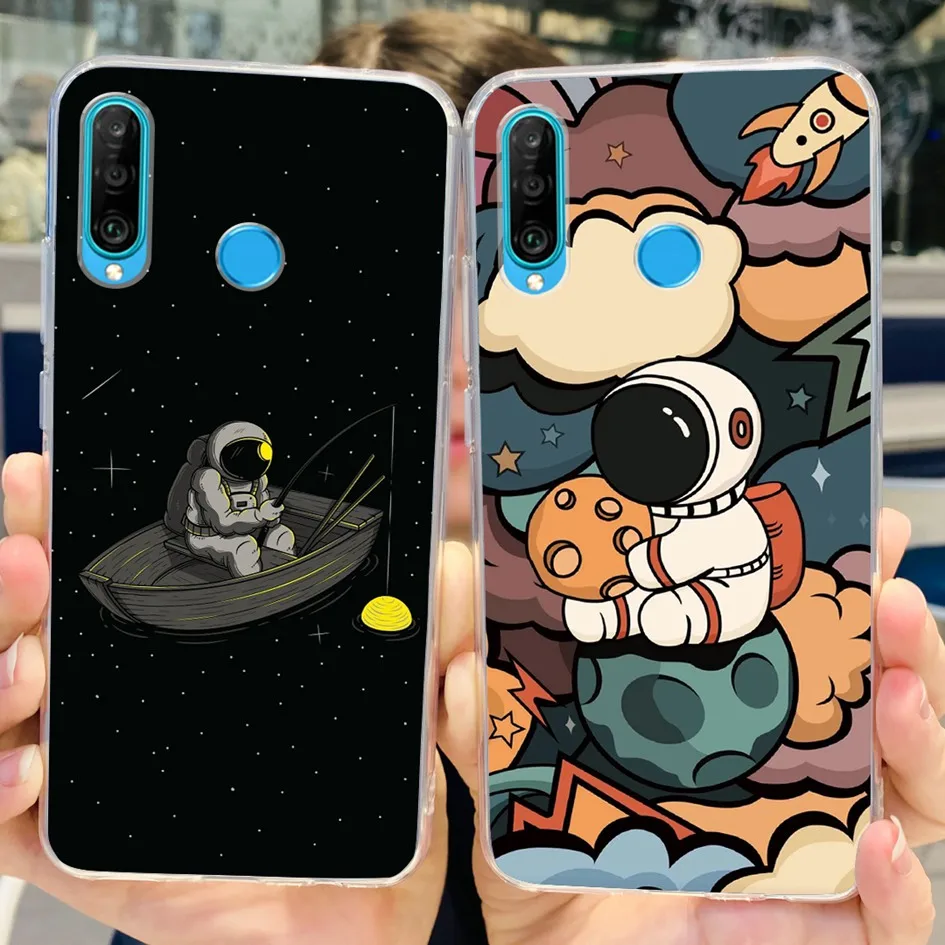 Para Huawei P30 Lite funda MAR-LX1M MAR-L21A MAR-LX1A funda bonita de astronauta parachoques de silicona transparente para Huawei P30 Pro Lite P 30 Capa
