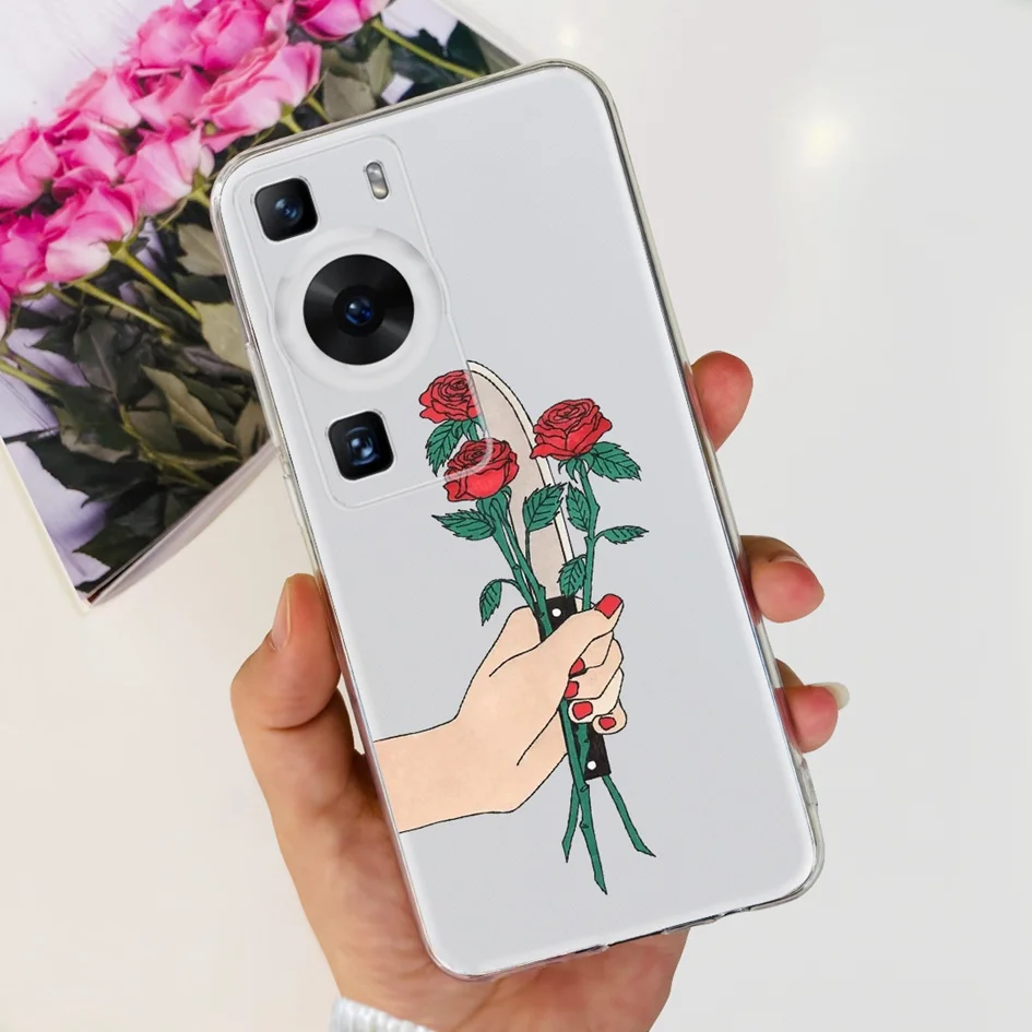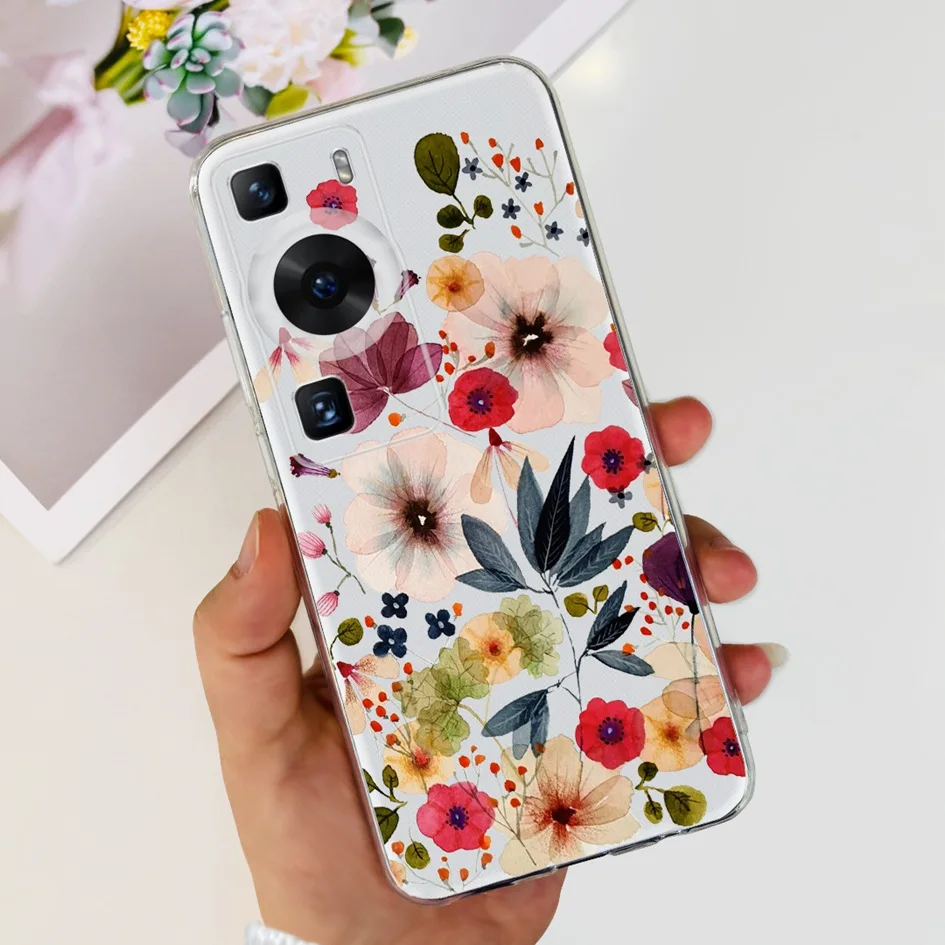 Comprar Para Huawei P60 Pro funda 4G cubierta de flores elegante leopardo pintado parachoques fundas de teléfono transparentes para Huawei P 60 P60 2023 P60Pro carcasa