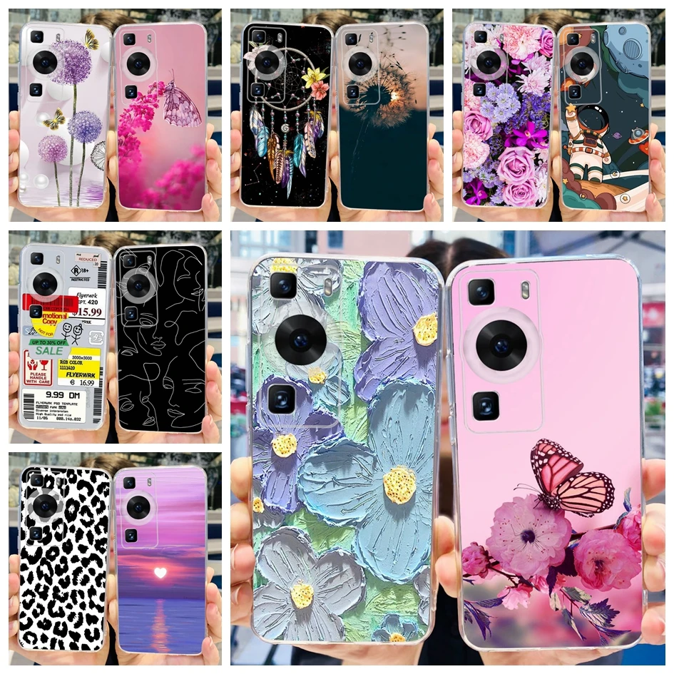 Comprar Para Huawei P60 Pro funda 4G cubierta de flores elegante leopardo pintado parachoques fundas de teléfono transparentes para Huawei P 60 P60 2023 P60Pro carcasa