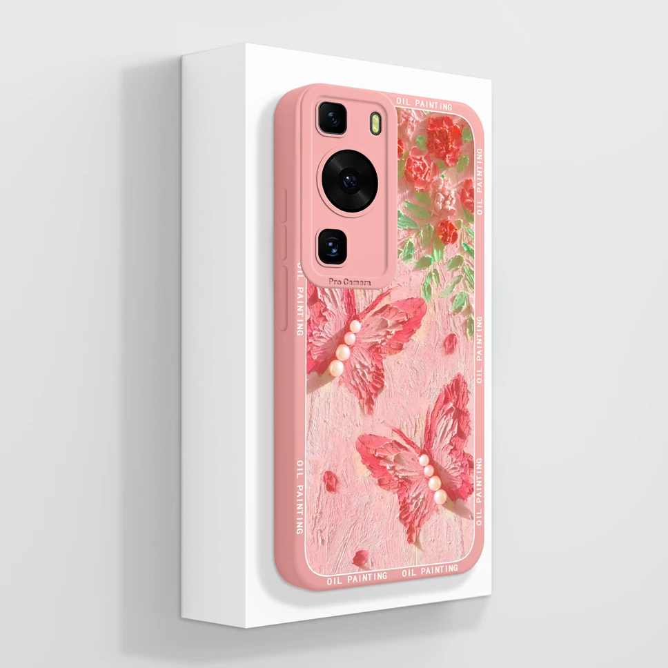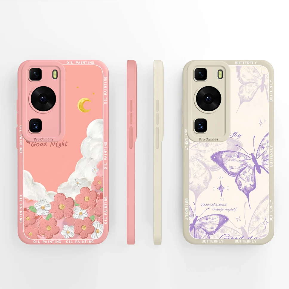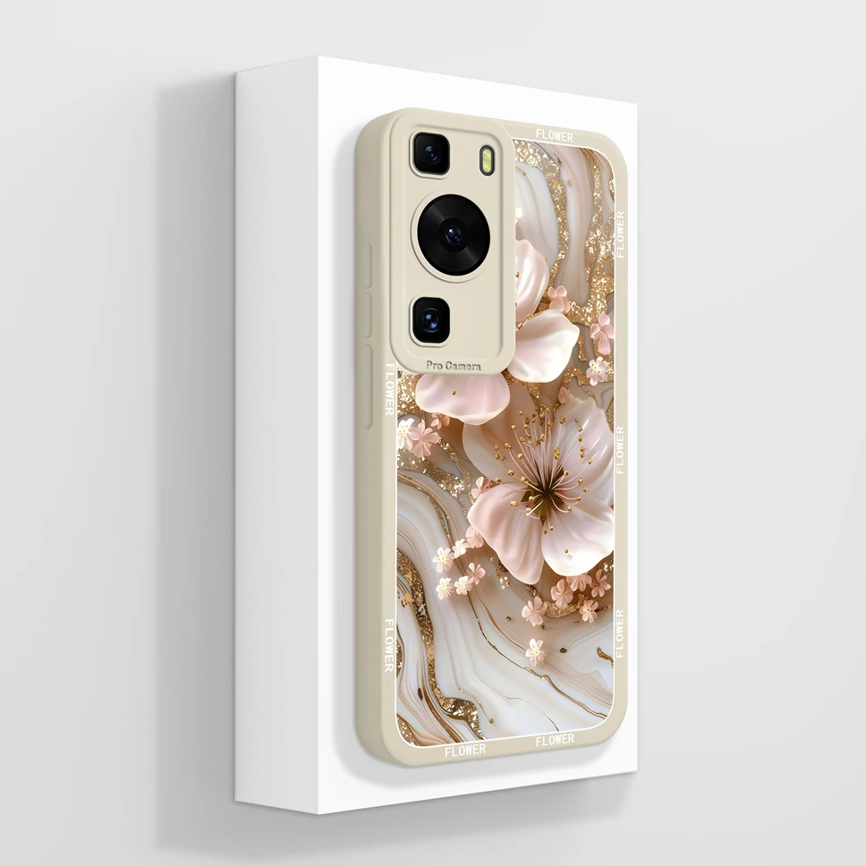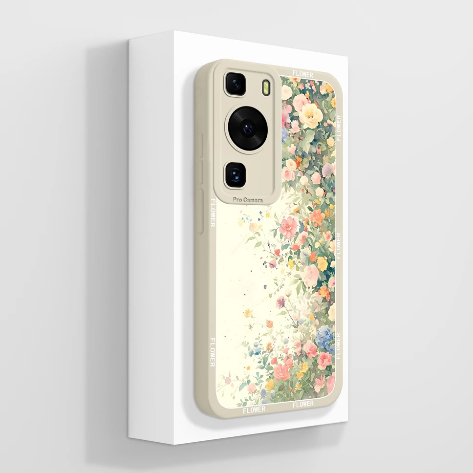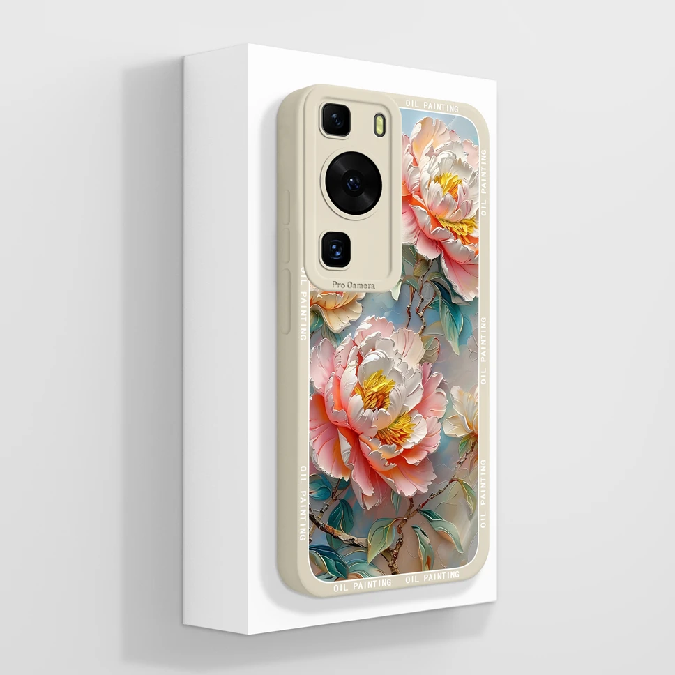Comprar Para Huawei P60 Pro P60 funda artística flores elegantes silicona líquida suave a prueba de golpes parachoques de teléfono para Huawei P 60 carcasa duradera