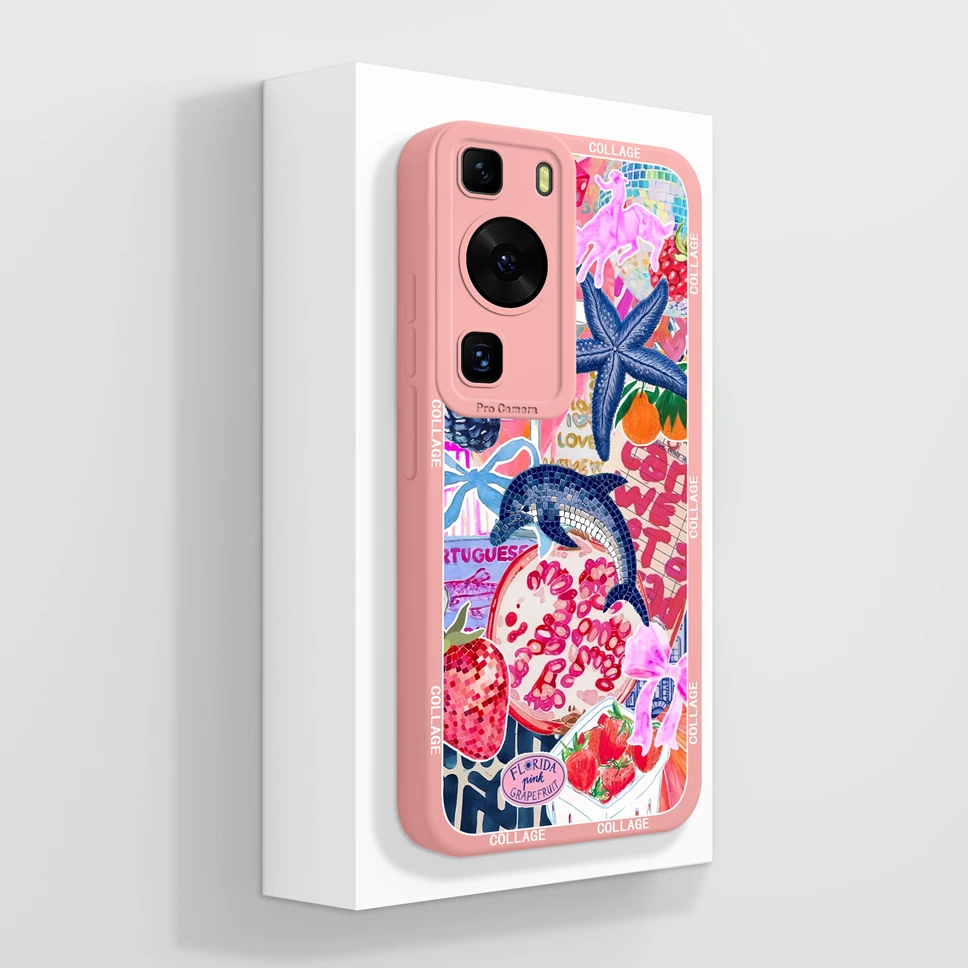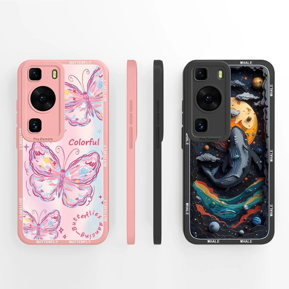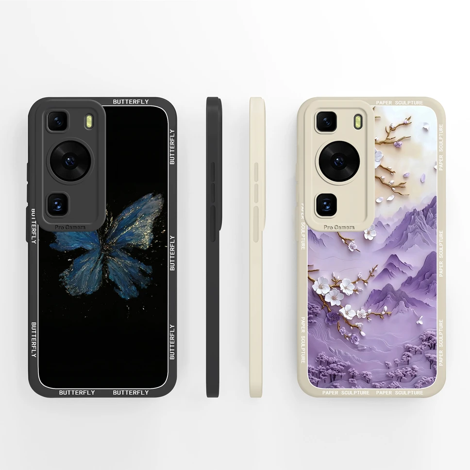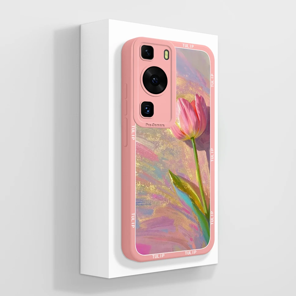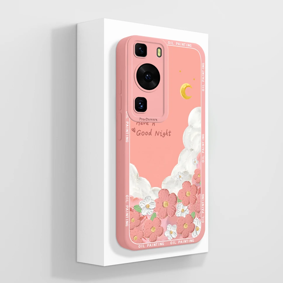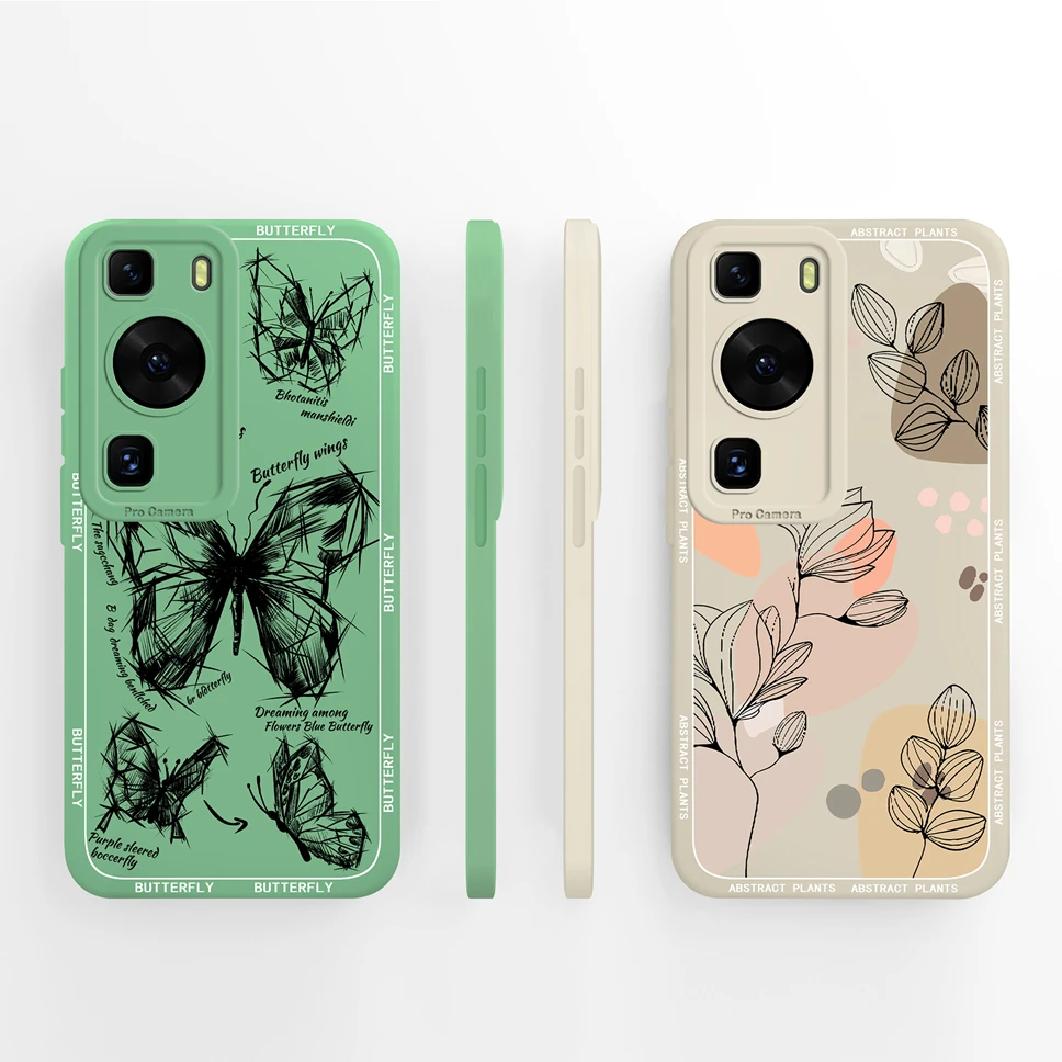 Comprar Para Huawei P60 Pro P60 funda artística flores elegantes silicona líquida suave a prueba de golpes parachoques de teléfono para Huawei P 60 carcasa duradera