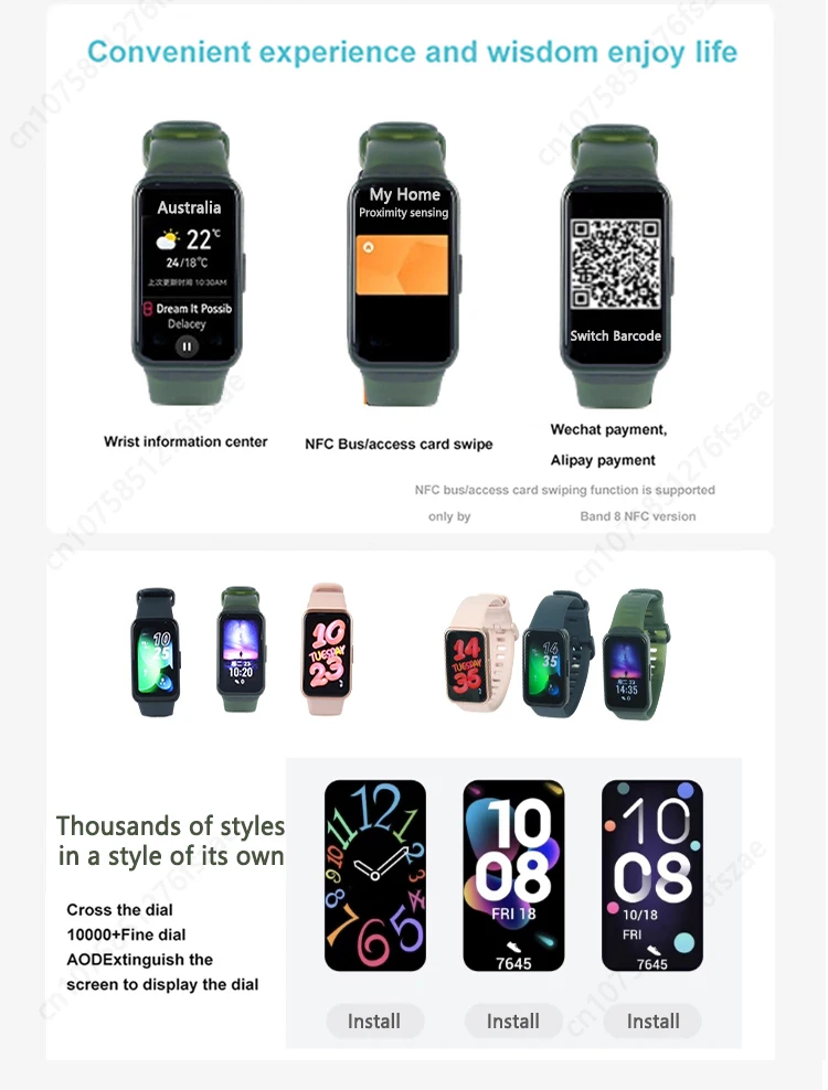 Comprar HUAWEI-pulsera inteligente Band 8 Original, reloj con control del ritmo cardíaco, oxígeno en sangre, Pantalla AMOLED de 2023 pulgadas, duración de la batería de 2 semanas, novedad de 1,47