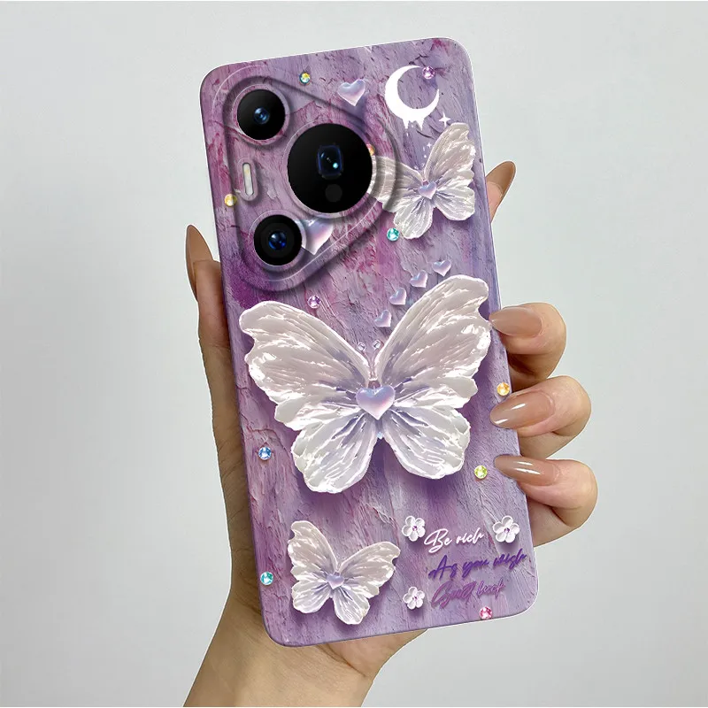 Comprar Para Huawei Pura 70 Pro funda bonita mariposa flor funda de teléfono de silicona suave para Huawei Pura 70 Pura70 Pro 70Pro Plus contraportada