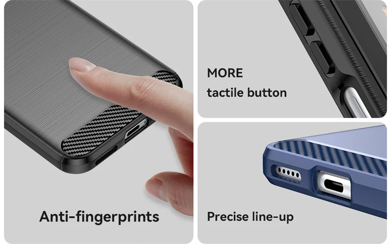 *Material*: textura de fibra de carbono, tacto suave y cómodo y silicona TPU suave