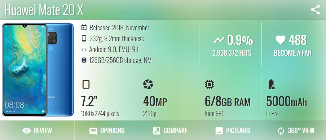 El 20 X es, de hecho, el dispositivo más memorable del Cuarteto Mate: Tiene la pantalla más grande, la mejor de las cámaras, el procesador más rápido y la batería más potente. Es compatible con el lápiz óptico M-Pen de Huwaei y la gigantesca pantalla OLED tiene las muescas más pequeñas.