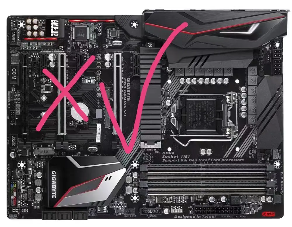 7\ Algunas placas base no son reconocidas, como GIGABYTE, consulte la siguiente figura para la instalación.