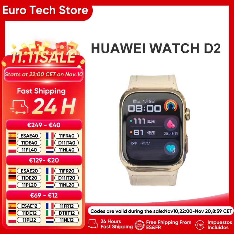 Comprar HUAWEI Watch D2 Pantalla AMOLED de 1,82 pulgadas ECG Monitoreo completo del sueño Cuidado de la salud familiar Conversa Bluetooth Correa de airbag NFC