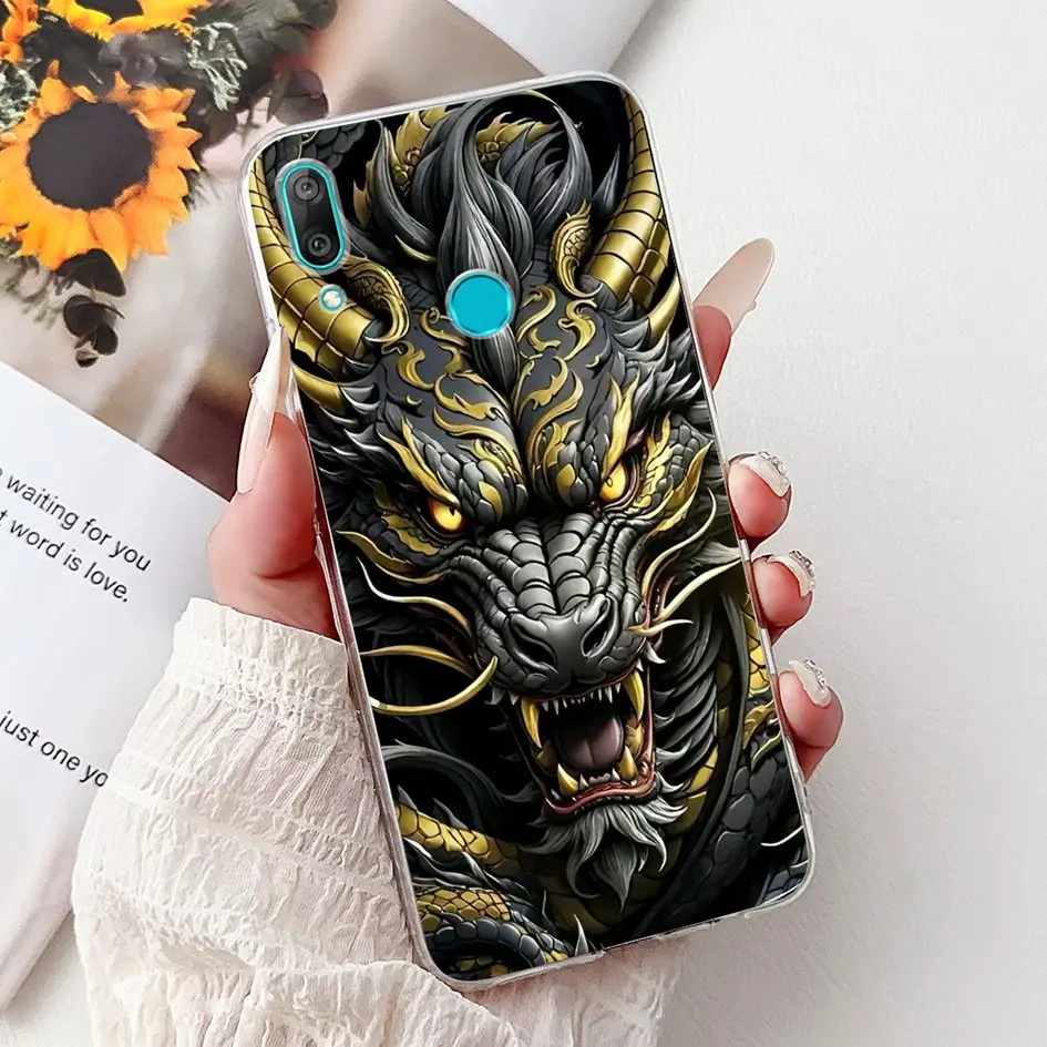 Para Huawei Y7 2019 Y 7 Prime 2019 funda Cool dibujos animados dragón cubierta trasera silicona suave transparente TPU parachoques en Huawei Y7 Pro 2019 Funda