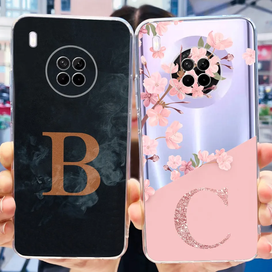 Comprar Para Huawei Y9a 2020 funda Nova Y9a contraportada moda flores letras suave silicona transparente parachoques para HuaweiY9a FRL-22 FRL-23 Coque