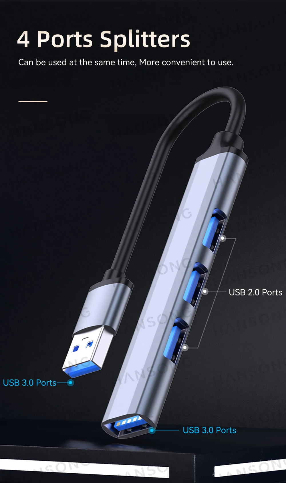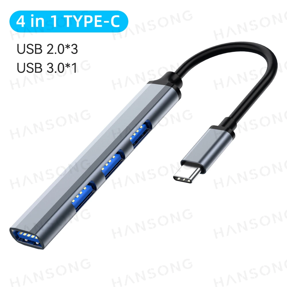 Comprar HUB 4 en 1 USB C 3,0 para ordenador portátil, Tablet y teléfono inteligente, adaptador divisor para MacBook Pro, Samsung, Microsoft, DELL, Lenovo
