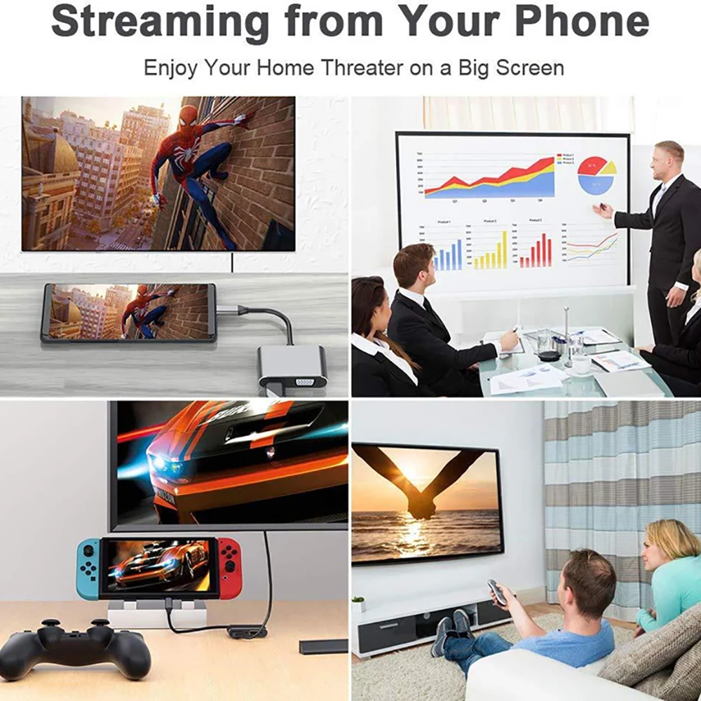 Comprar Hub 4K tipo C a HDMI, estación de acoplamiento 4 en 1, adaptador USB C 3,0 VGA PD para Huawei, Xiaomi, Samsung S20, Nintendo Switch
