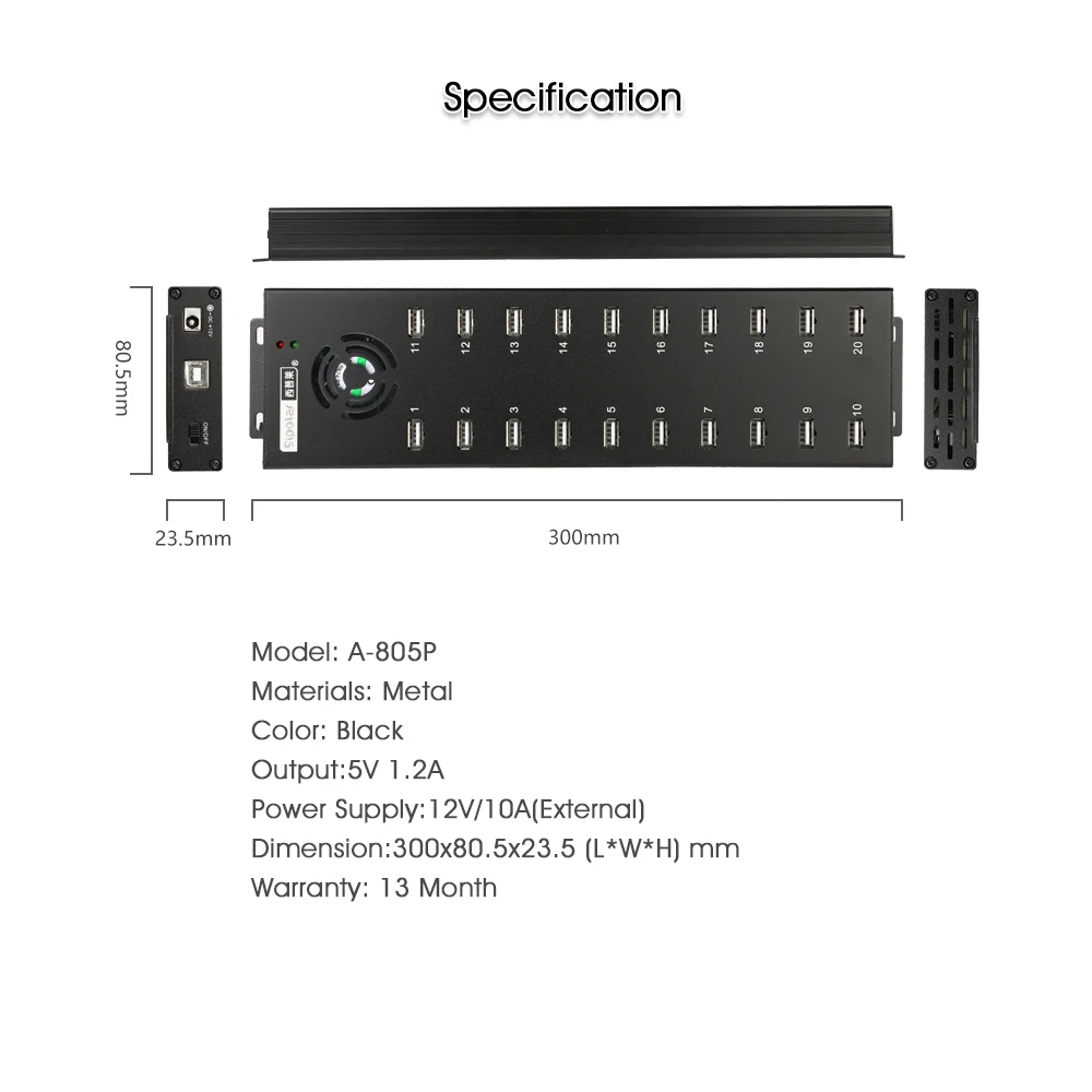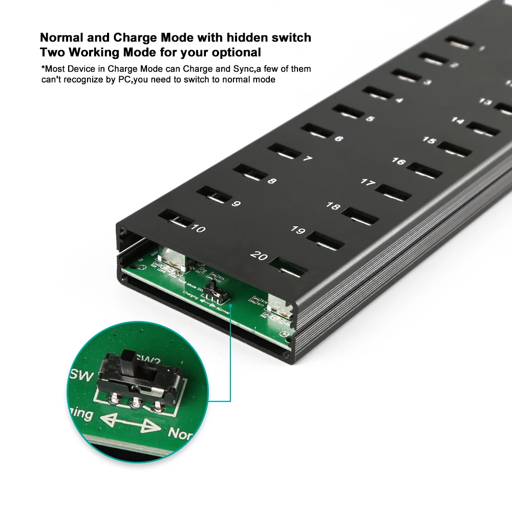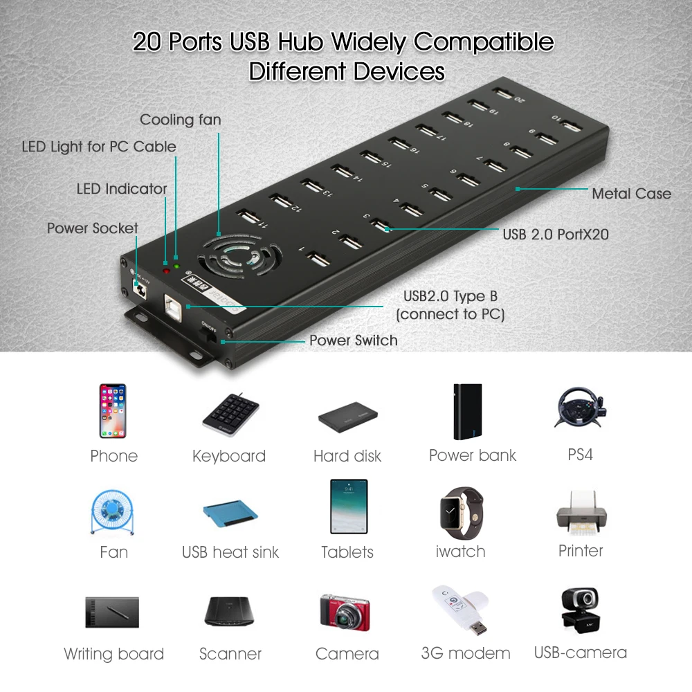 Comprar Hub cargador USB 2,0 Sipolar multi de 20 puertos con adaptador de corriente de escritorio externo 12V10A para sincronización de datos y carga de tabletas telefónicas