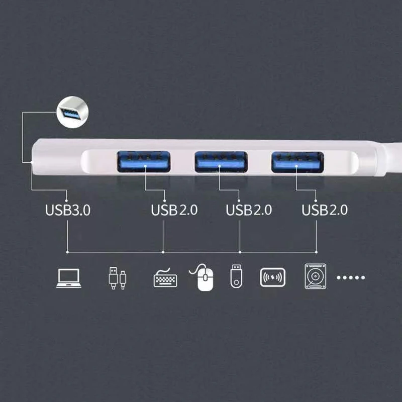 Tipo C HUB Super Slim Aluminio USB 3,0 2,0 Convertidor a USB C 4 en 1 Cable Splitter Extender Teléfono Base de carga Ratón Teclado Adaptador USB Lector de disco duro