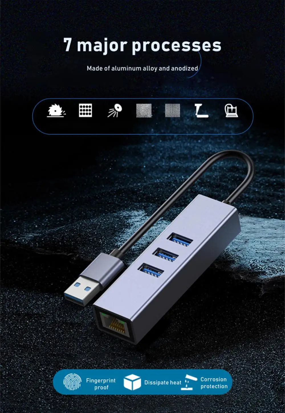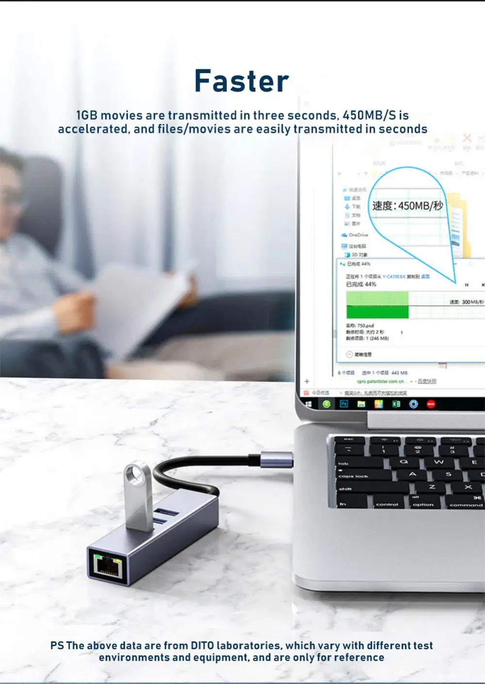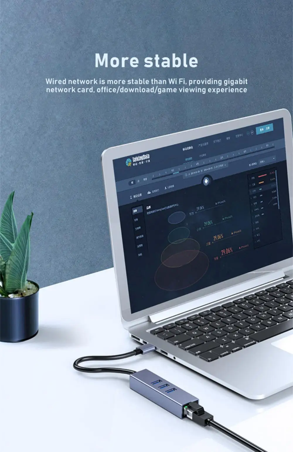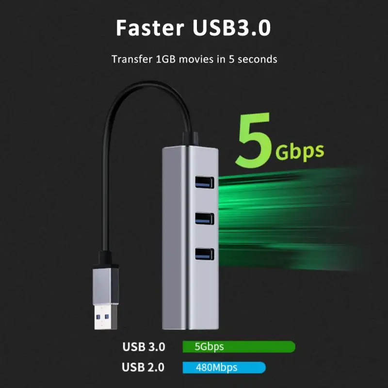 2.Transmisión de alta velocidad: USB3.Tarjeta de red de 0 gigabits+3.0 HUB hub drive gratis es más simple, USB3.La transmisión de velocidad ultraalta de 0 (5GMbps) cumple con los requisitos de transmisión 3.Interfaz de red de 1000 Mbps, mejora la velocidad de transmisión de la red, tiene su propio cable de datos USB, que es conveniente para usar computadoras portátiles, compatible con USB2.Versión 0 o inferior, intercambio de datos más aleatorio.