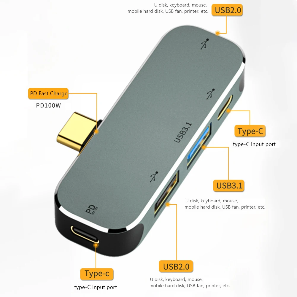 Hub de extensión tipo C, conector PD100W de 3,55mm, USB3.0/USB2.0/USB3.1, extensor USB Compatible con HDMI, accesorio divisor para ordenador y portátil