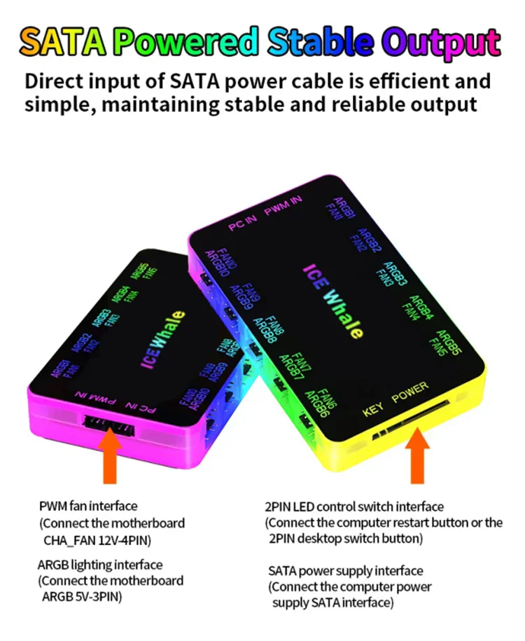 HUB ICE Whale C10 ARGB/PWM con controlador ARGB Adaptador HUB de ventilador 2 en 1