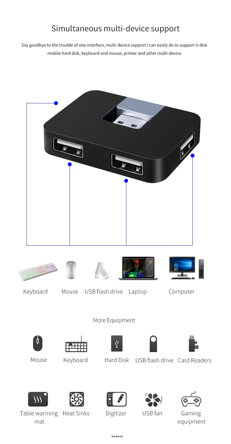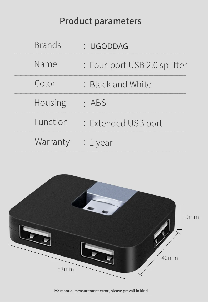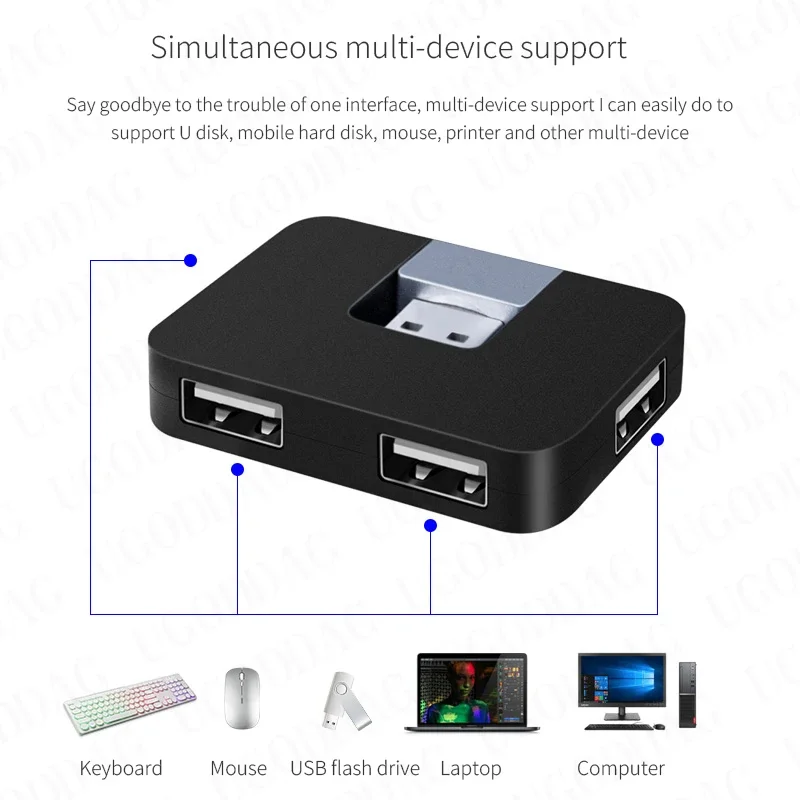 Hub Usb de 4 puertos giratorio USB 2,0 estaciones de acoplamiento divisor de interfaz USB múltiple para ordenador portátil PC ordenador Macbook Air USB Hub