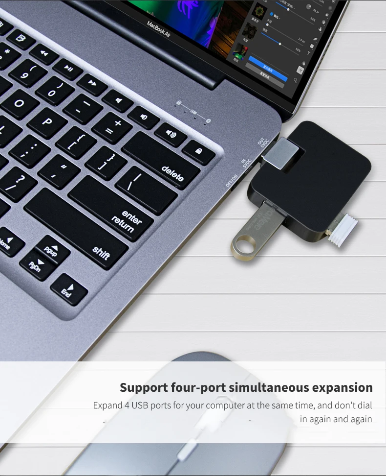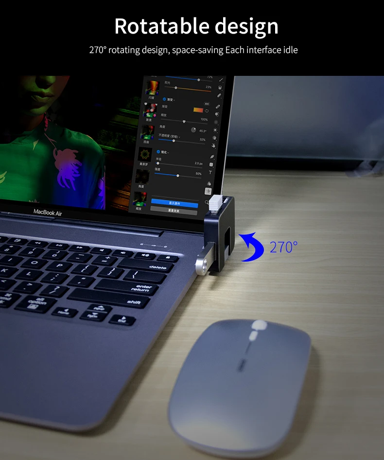 Comprar Hub Usb 2,0 giratorio de 4 puertos, estación de acoplamiento, divisor de interfaz multiusb para ordenador portátil, PC, Macbook Air