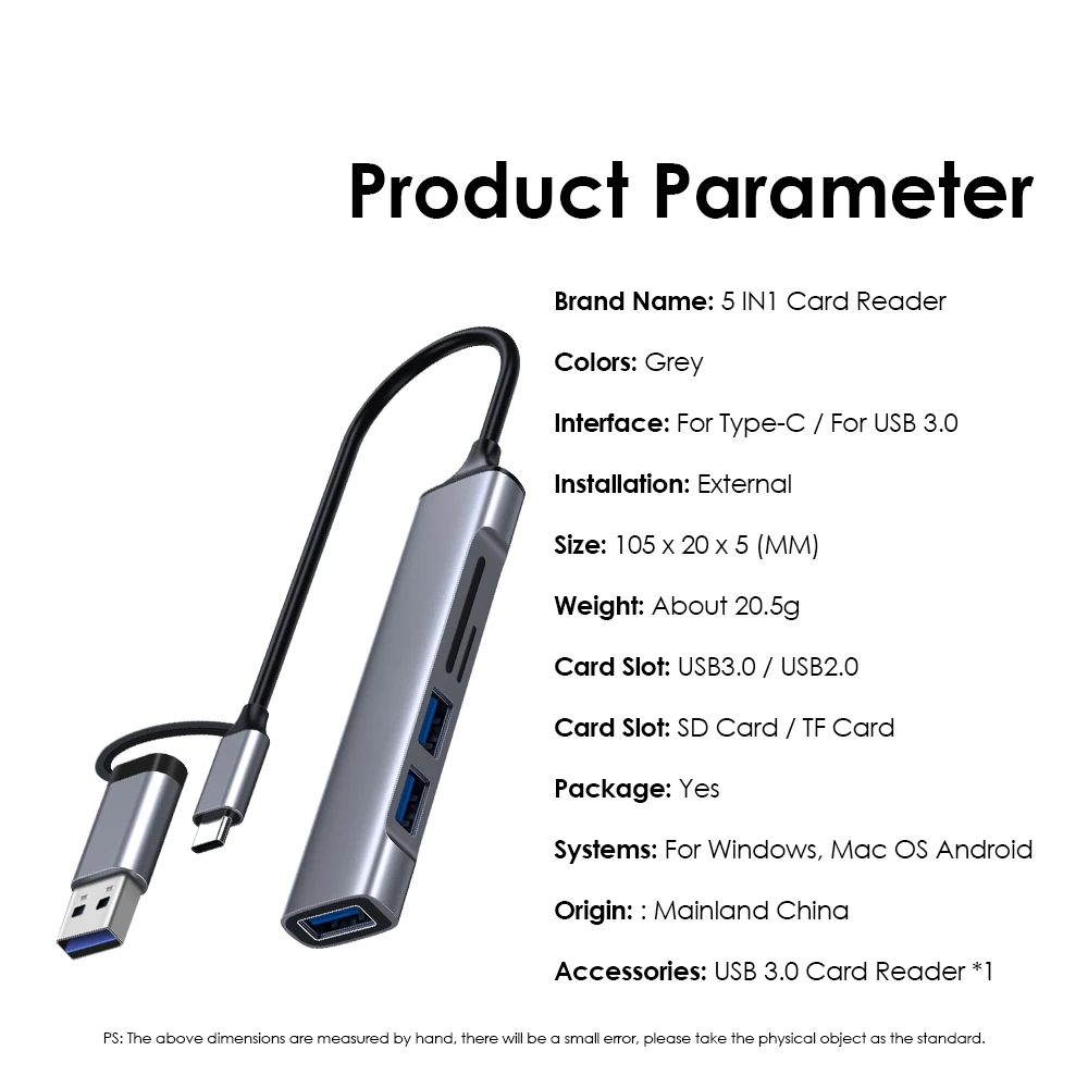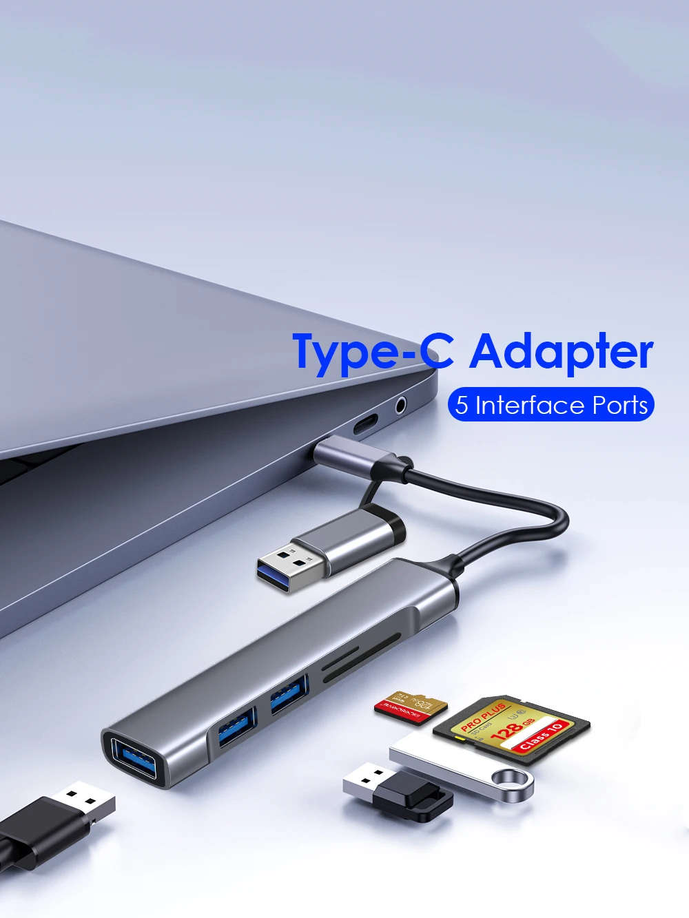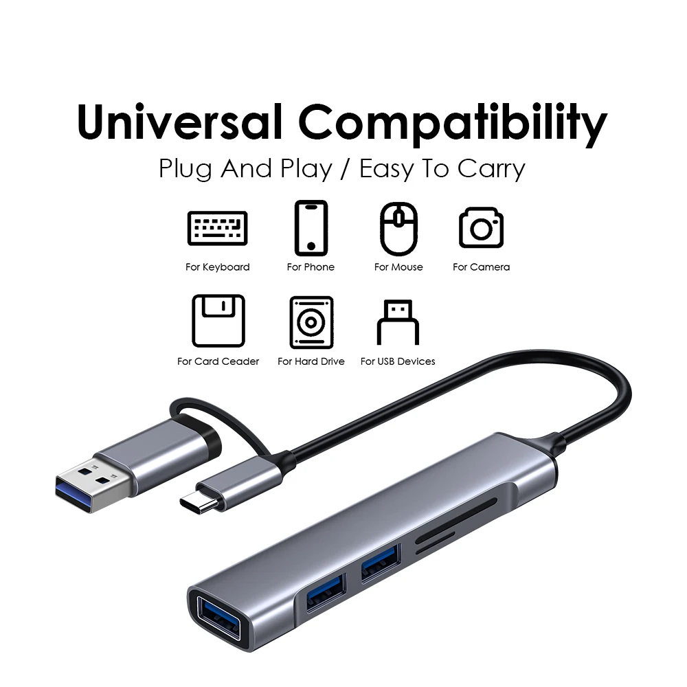 HUB USB 3,0 5 en 1, concentrador USB C, 5Gbps, transferencia de alta velocidad, divisor USB, adaptador OTG C a USB para Macbook 13 15 Air Mi Pro, PC y portátil