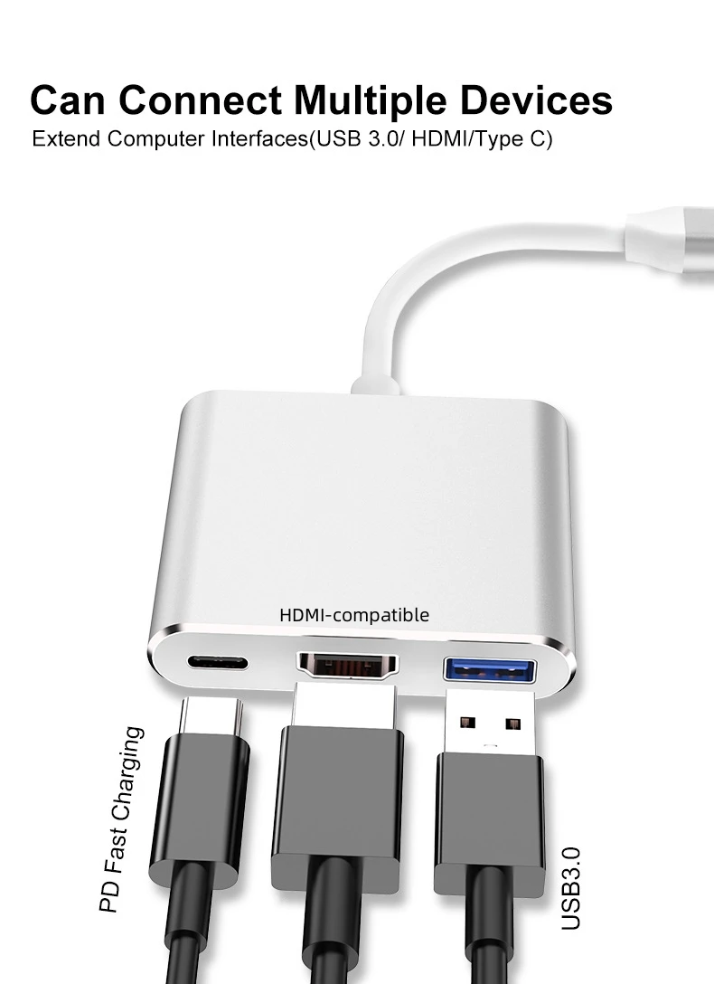 Compatible con HDMI/Adaptador multipuerto USB 3.0/USB-C Cargue su computadora portátil/teléfono móvil en Macbooks, Chromebooks conCompatible con HDMIpuertos