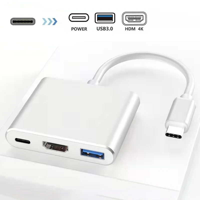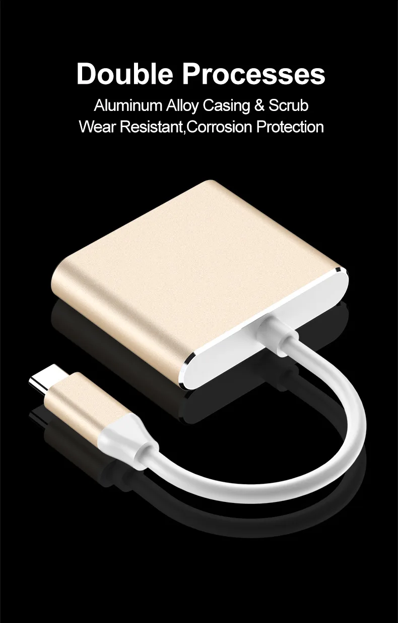 Cable adaptador USB tipo C macho a tipo C chapado en oro 1,3-en-1 compatible con HDMI/compatible