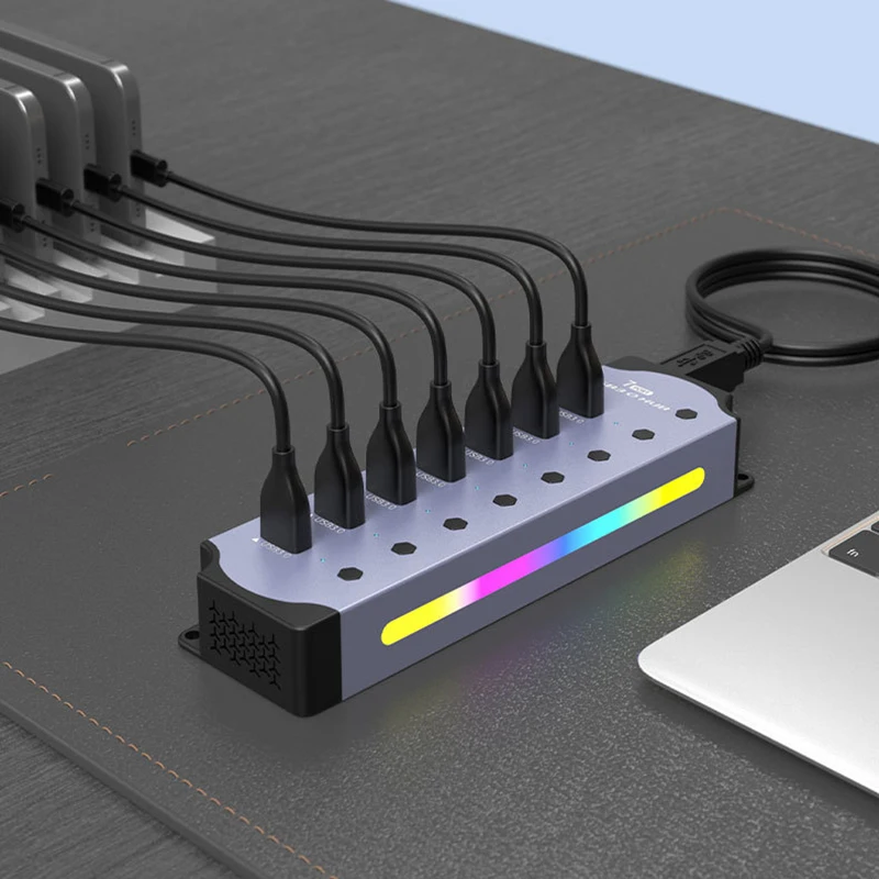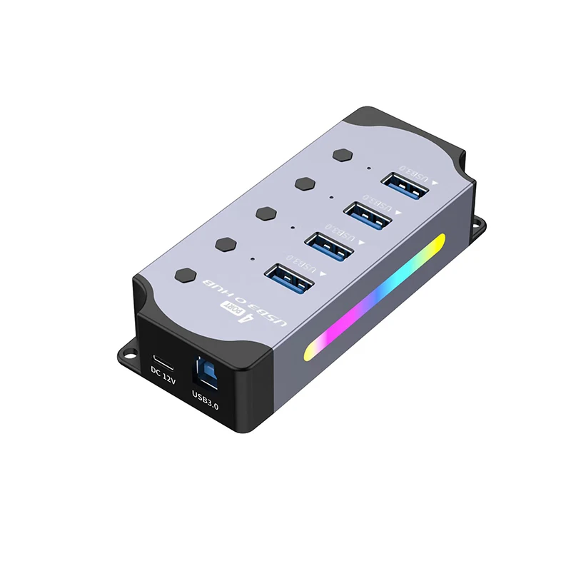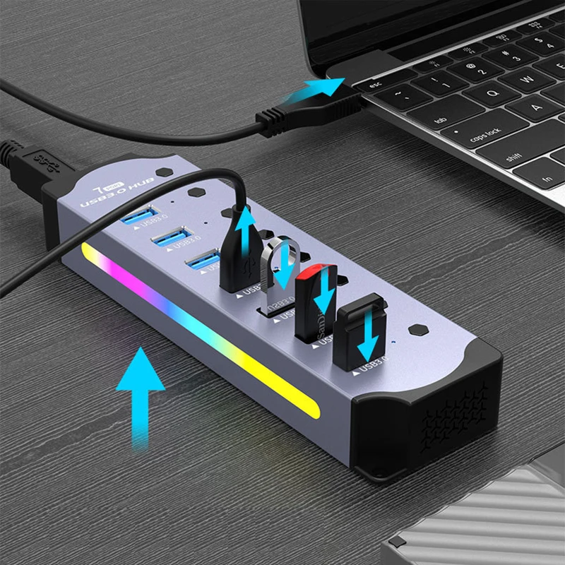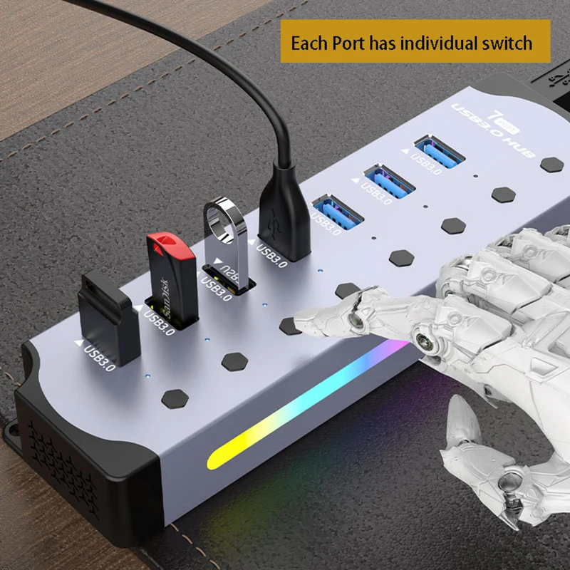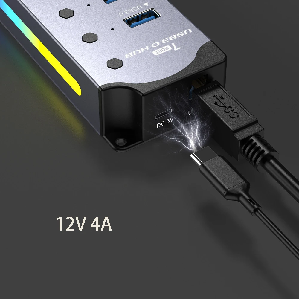 Divisor de cable HUB USB3.0 de 4 a 7 puertos, convertidor de cable de luz RGB de aleación de aluminio, estación de carga con interruptor para ordenador portátil, teléfono móvil, banco de energía, base de carga, teclado de ratón de disco USB