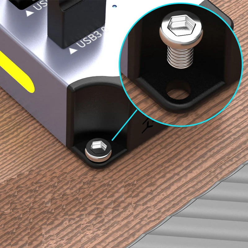 7. Orificio para tornillo para fijar el HUB, para evitar sacudidas para perder datos del disco USB y enfriar la carcasa de diseño hueco.