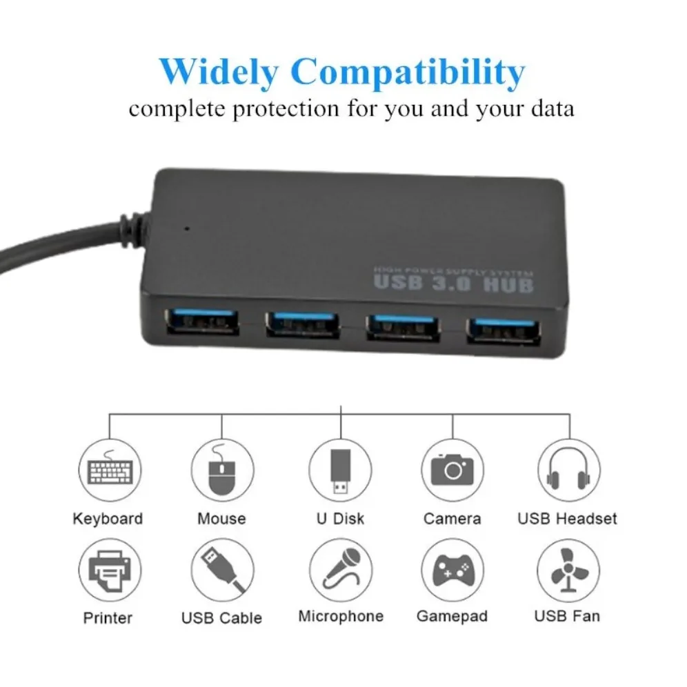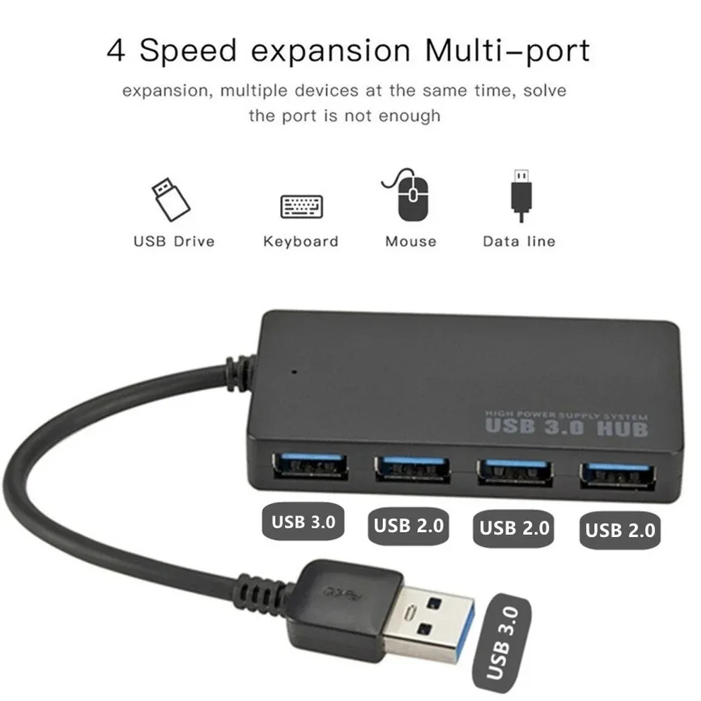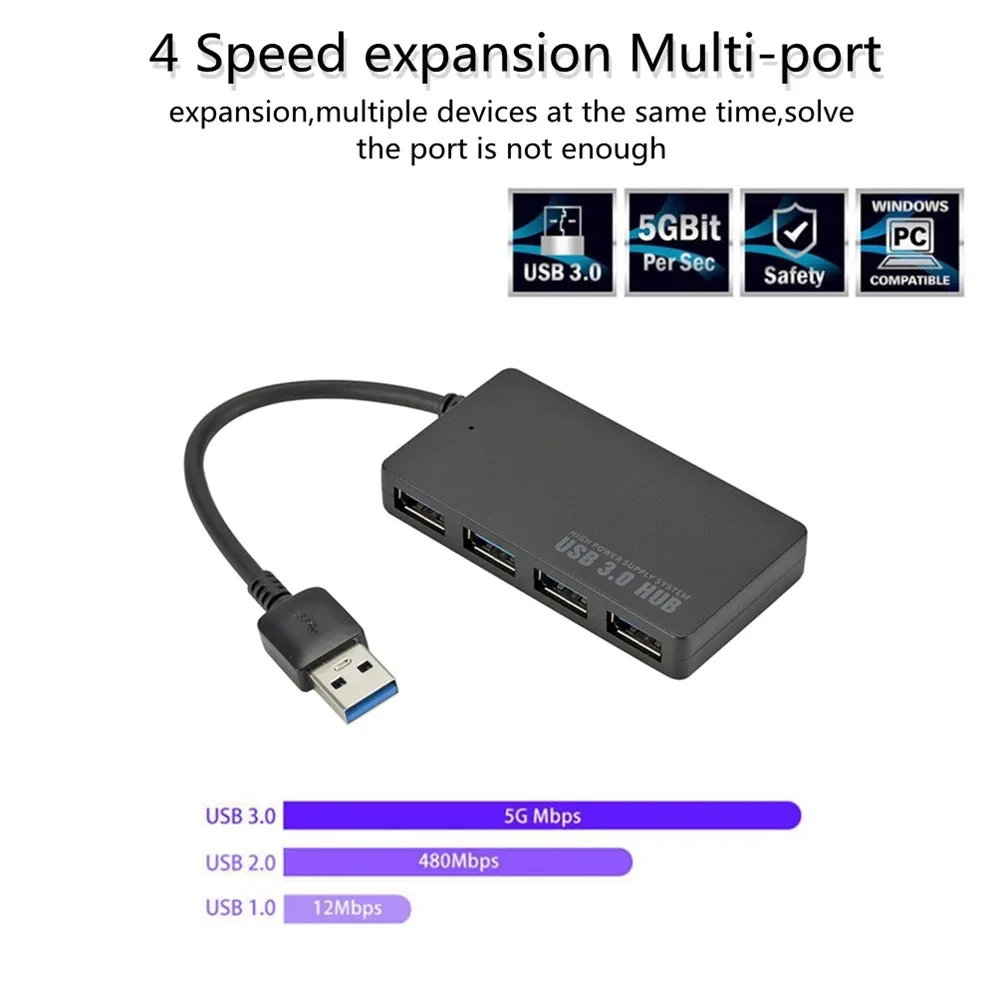 Comprar Hub USB 3,0 de 4 puertos, Adaptador convertidor de cable de datos de alta velocidad, compatible con múltiples sistemas, Plug and Play, para ordenador portátil y PC
