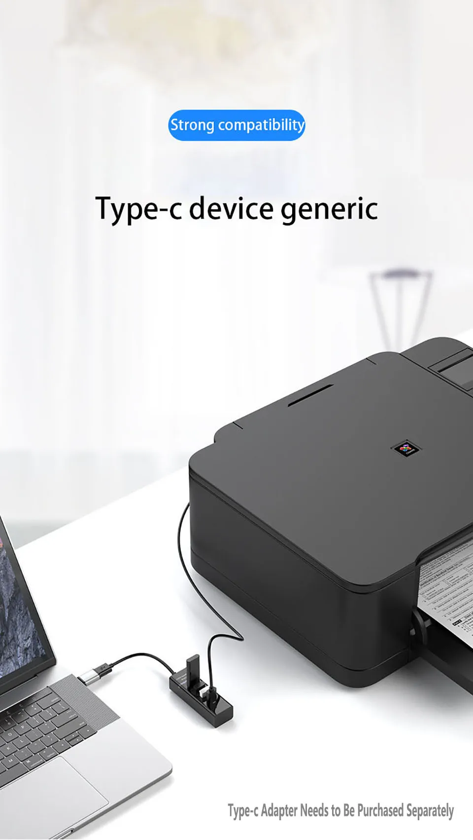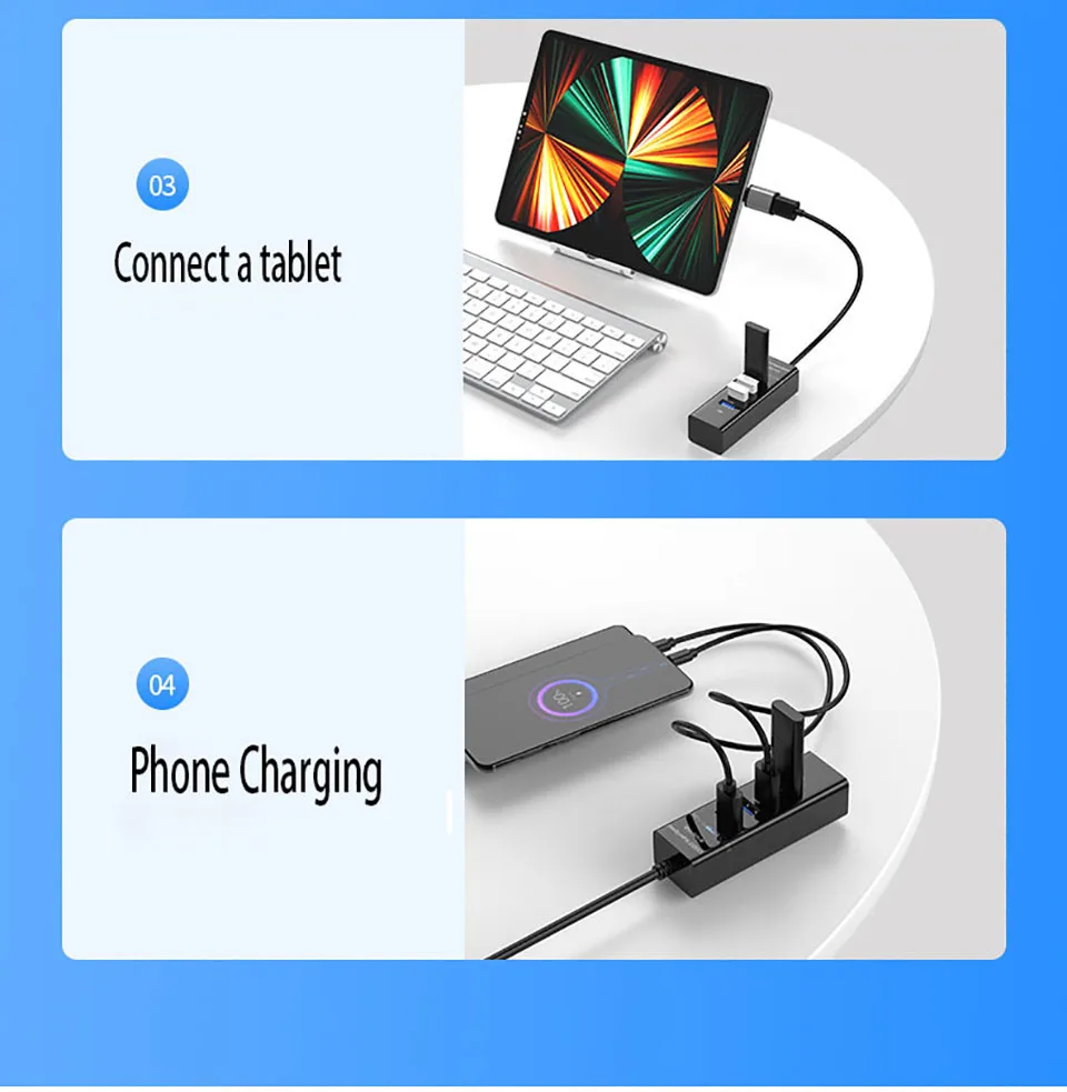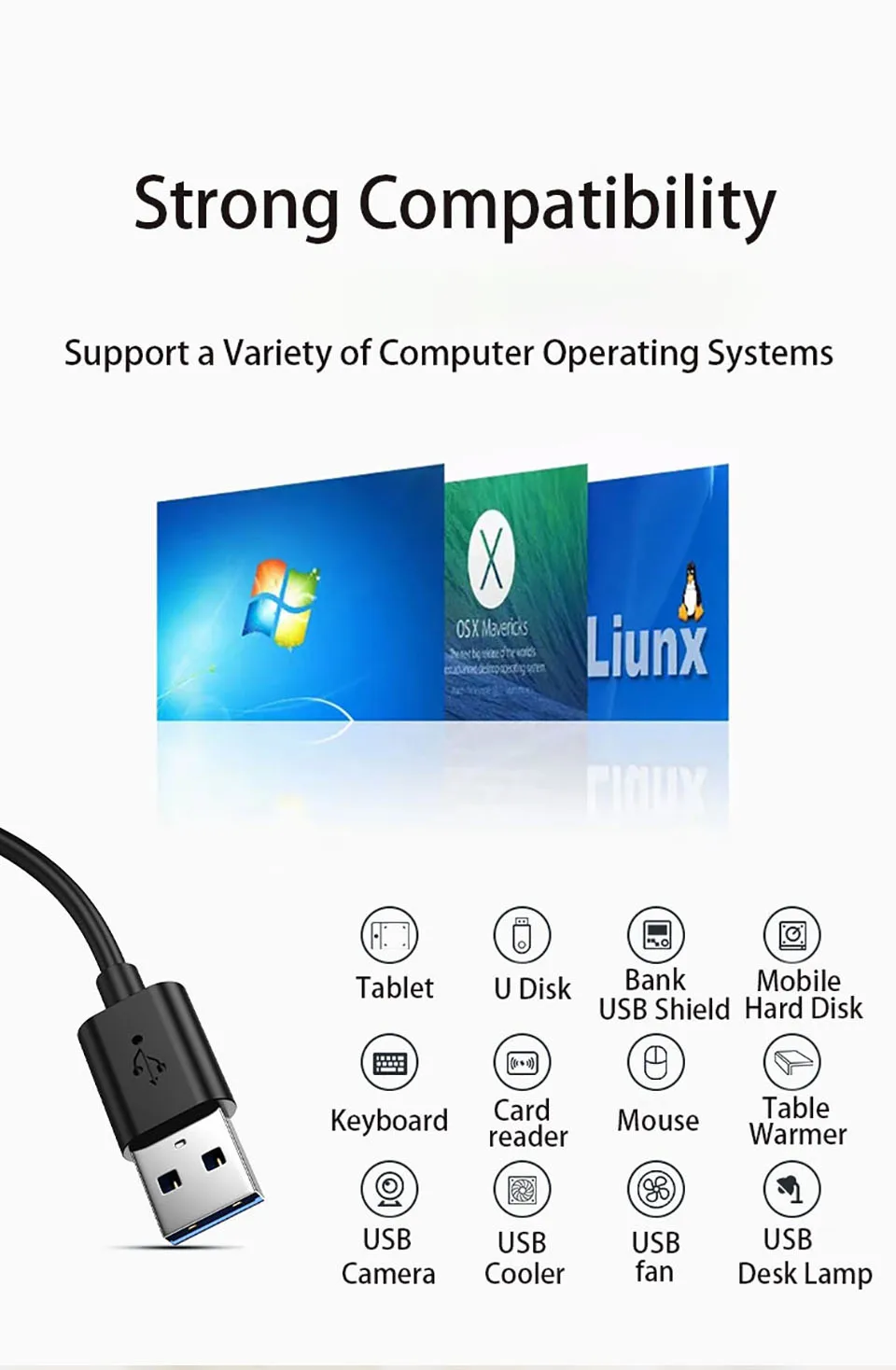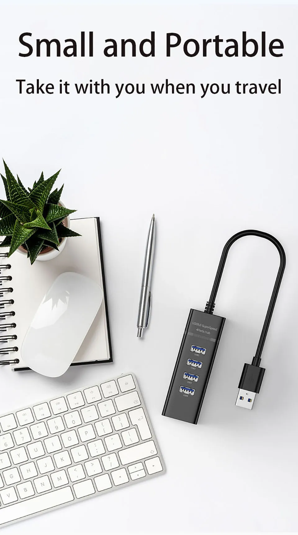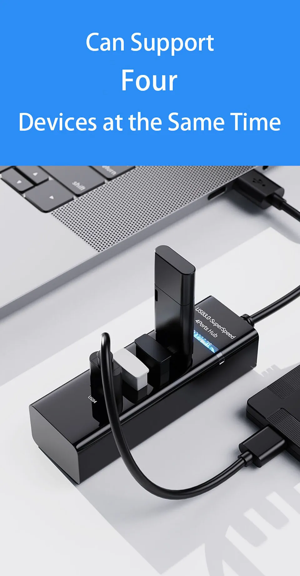 Por lo general, el portátil solo tiene 2 puertos USB, y el número de puertos solo se puede conectar a 2 dispositivos. Nuestro producto elimina la preocupación de tener un puerto USB demasiado lleno. El diseño de este HUB USB de 4 puertos es muy bonito. Los enchufes USB independientes están separados entre sí, lo que evita la compresión de algunos dispositivos USB grandes, lo cual es práctico y conveniente.