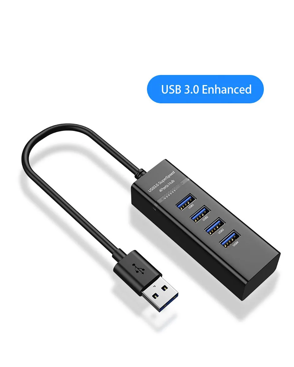 Comprar Hub USB 3,0 de 4 puertos, divisor de alta velocidad para discos duros, unidad Flash USB, ratón, teclado, adaptador extendido para portátiles