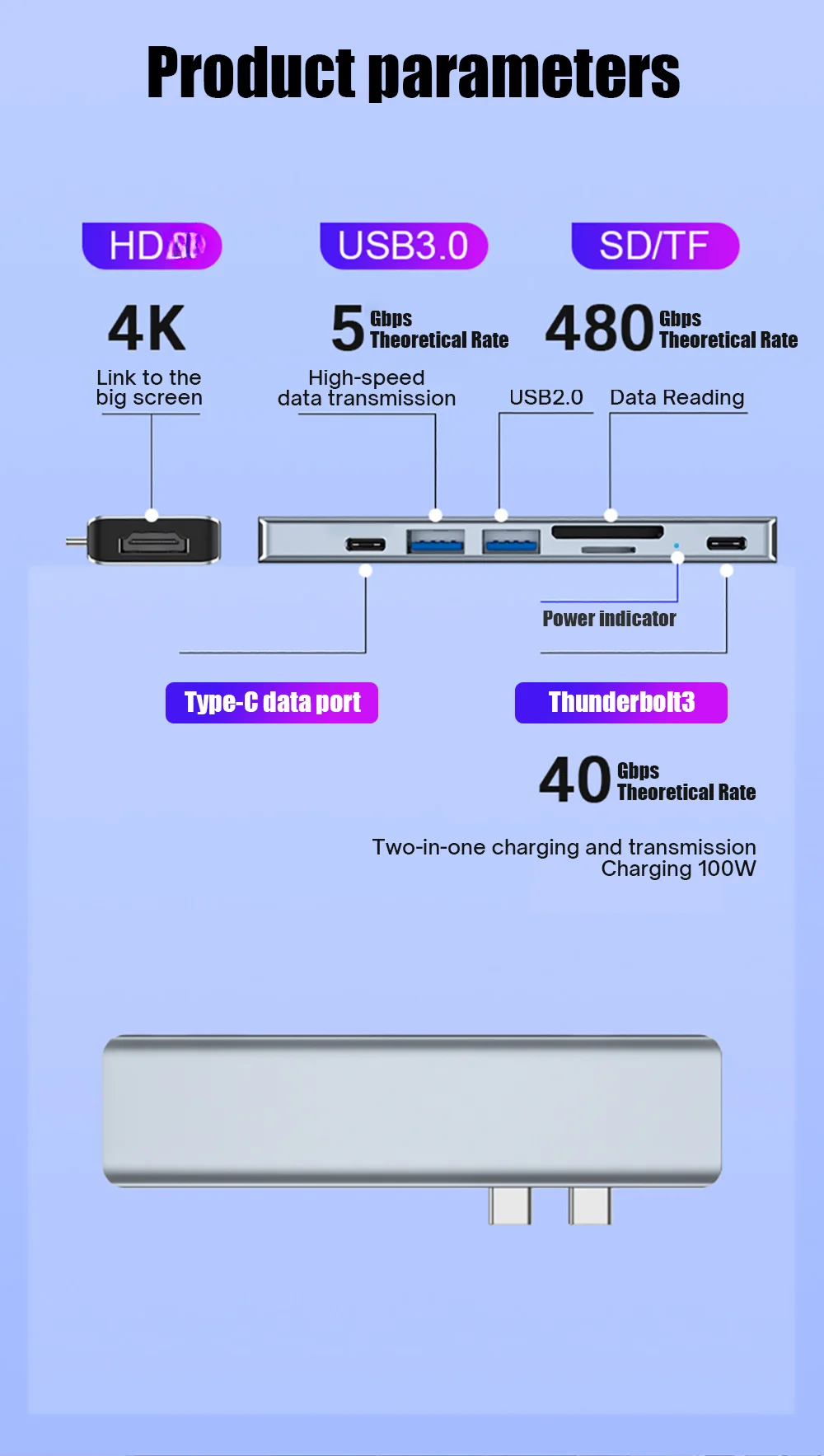 (1) Este concentrador de USB-C solo es adecuado para MacBook Pro 2016/2017/2018/2019/2020 y MacBook Air 2018/2019/2020, NO es compatible con otros modelos.