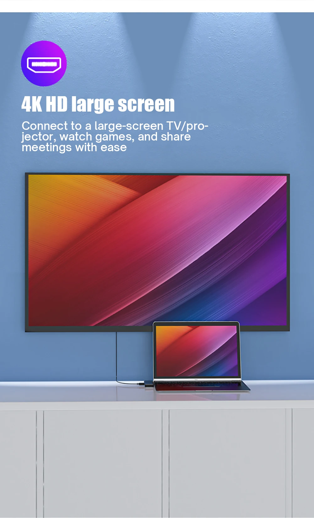 HD 4K, use la imagen del Puerto HD o el adaptador USB C para expandir la pantalla, luego transmita VIDEO 4K UHD o Full HD 1080P directamente a HDTV o proyector, disfruta de un festín visual de película.