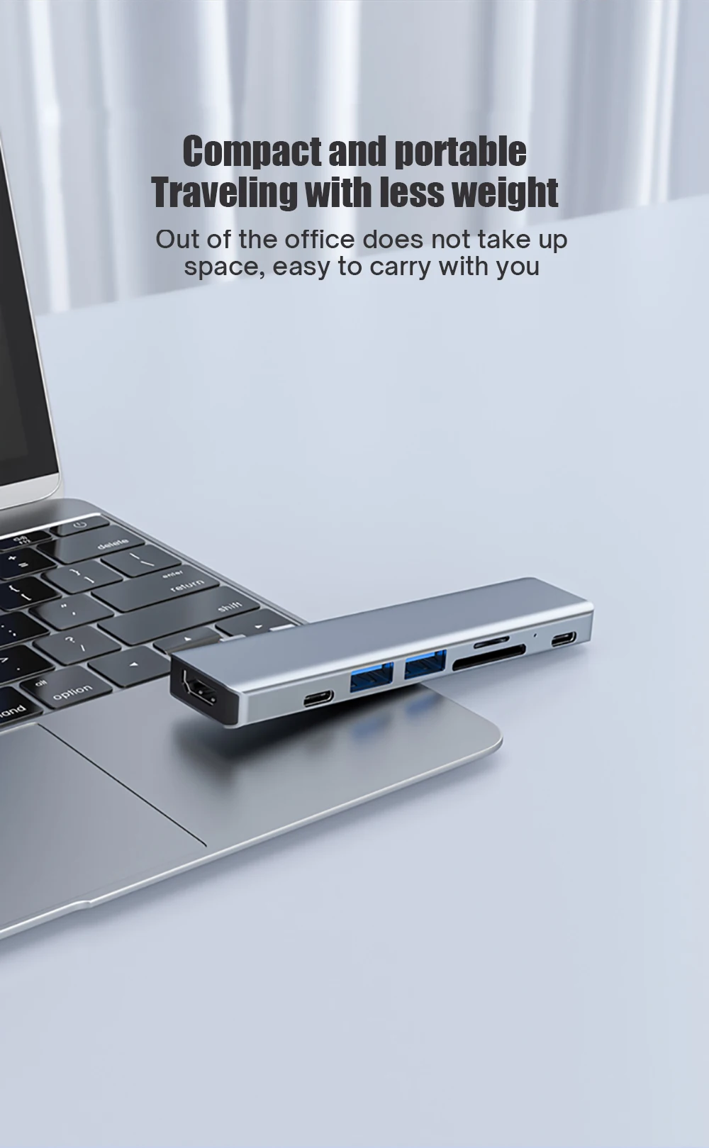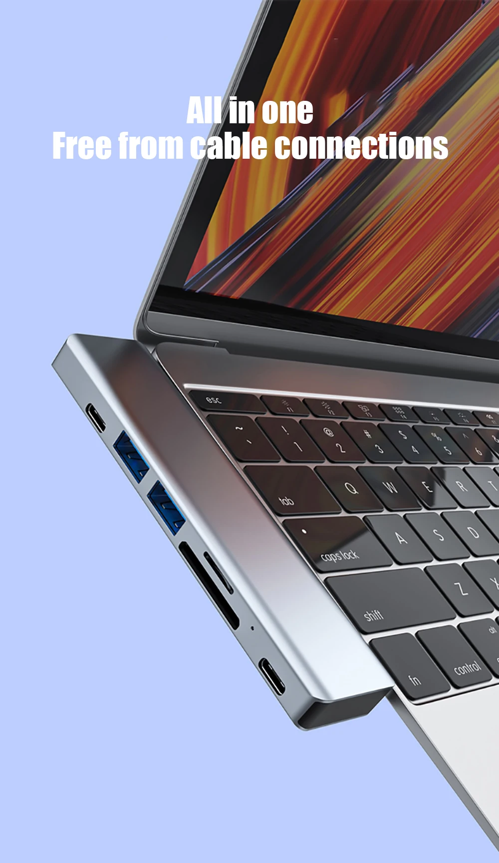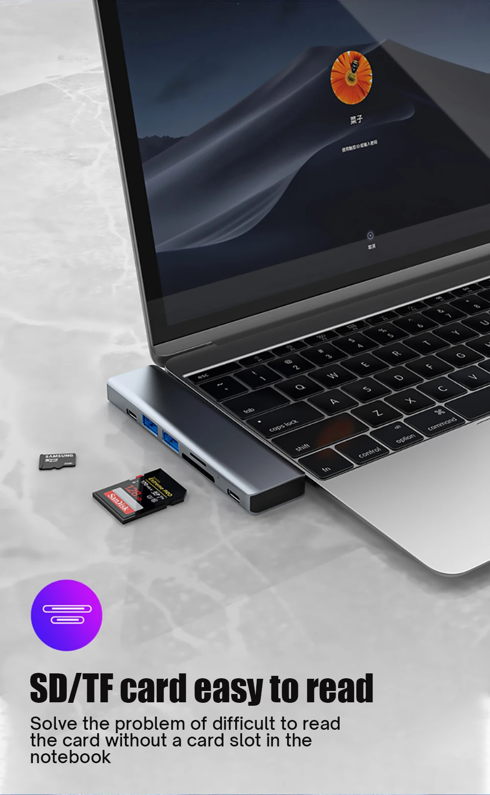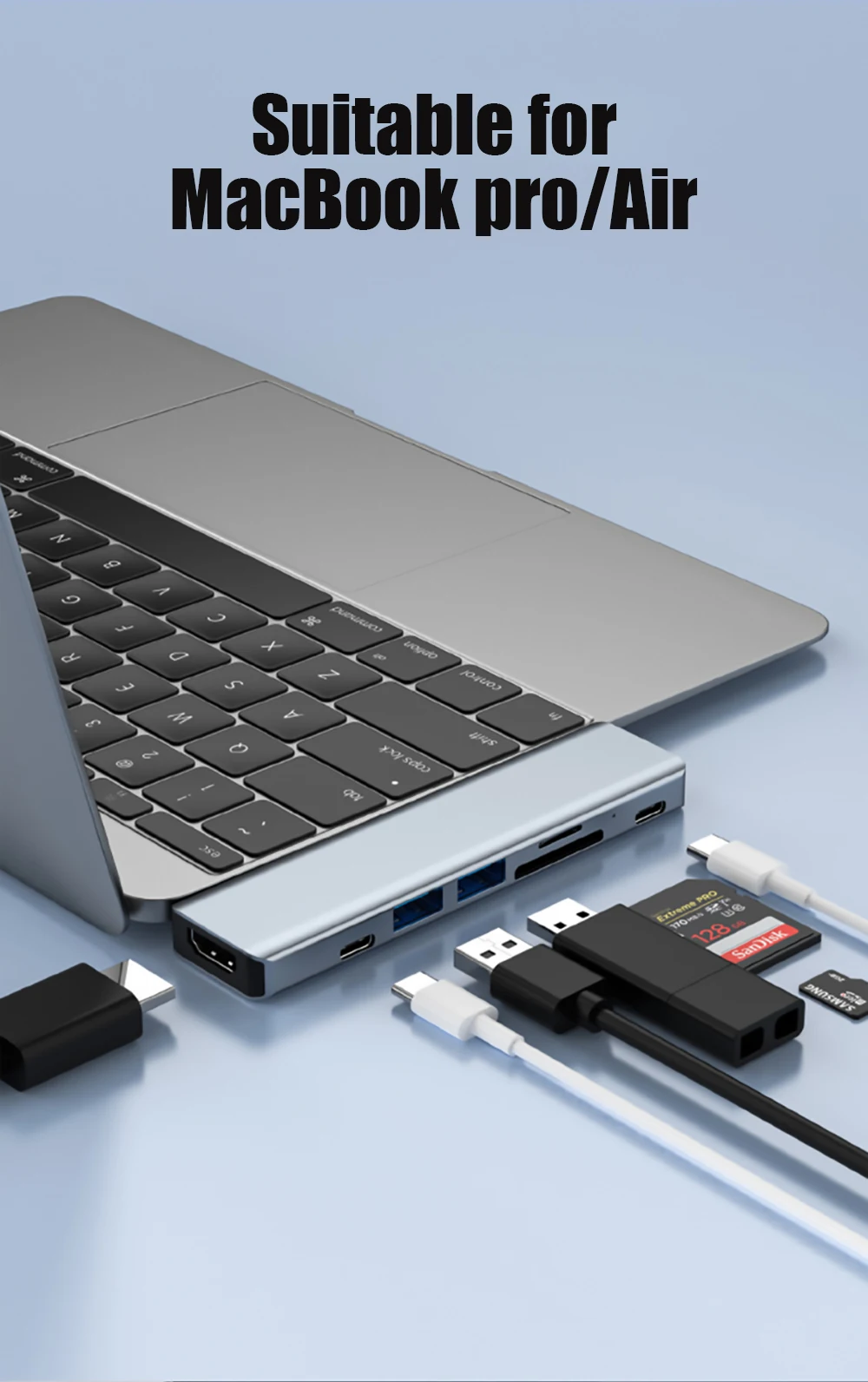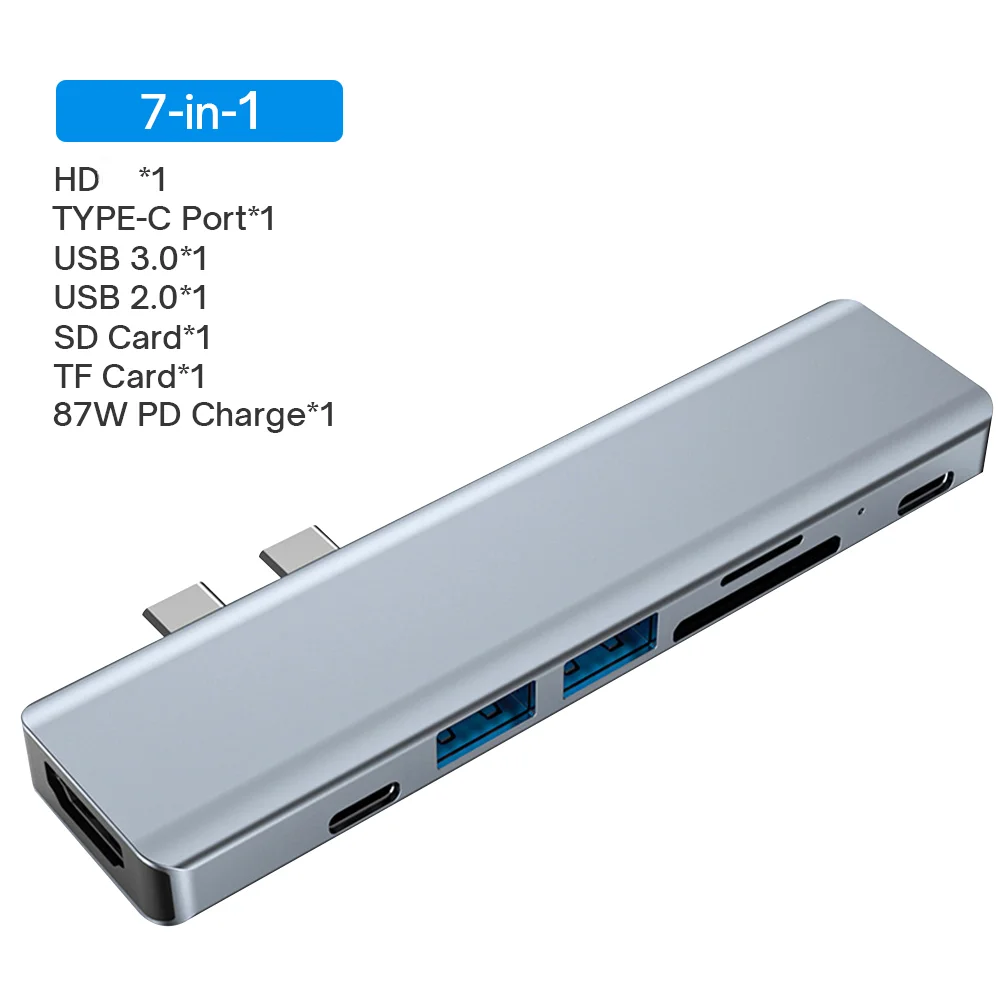 Comprar Hub USB 3,0 7 en 1 para MacBook M1 Air Pro, adaptador Compatible con HDMI, 4K, TF, lector de tarjetas SD, carga PD de 87W, accesorios para MacBook