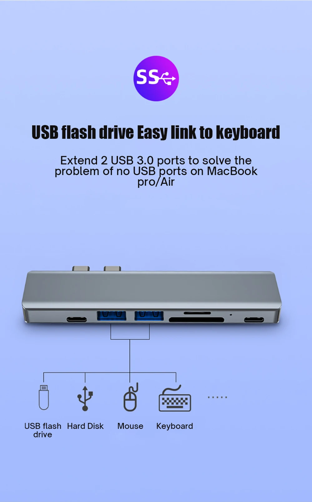 Extienda 2 puertos USB 3,0 para resolver el problema de que no haya puertos USB en Macboolpro / Air.