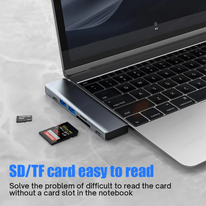 Comprar Hub USB 3,0 7 en 1 para MacBook M1 Air Pro, adaptador Compatible con HDMI, 4K, TF, lector de tarjetas SD, carga PD de 87W, accesorios para MacBook