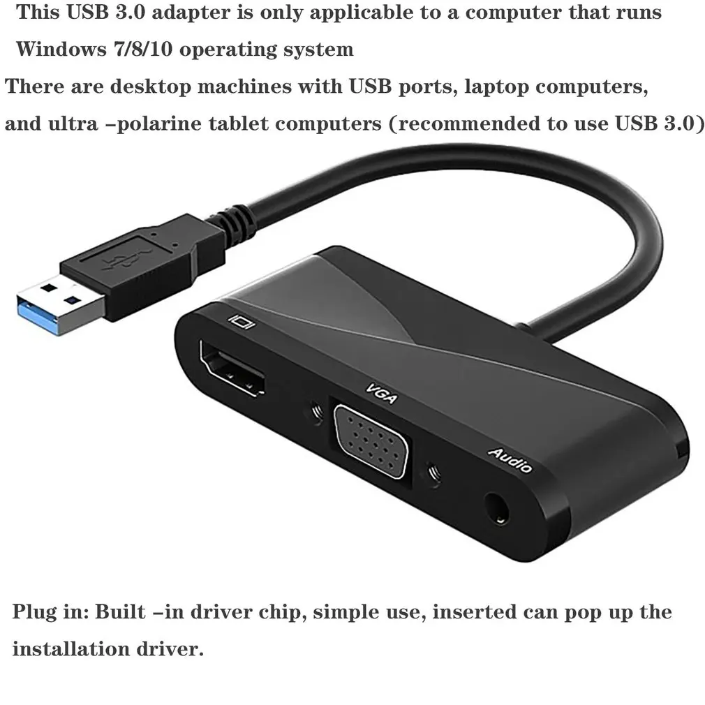 4 pantalla de espejo: este adaptador USB3.0 admite puertos de Audio compatibles con HDMI y VGA + para trabajar al mismo tiempo, lo que permite una Visualización simultánea o una expansión simultánea de la pantalla,. Lo cual es conveniente para trabajar o jugar en dos monitores.