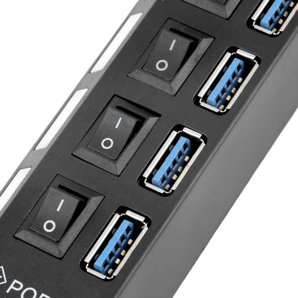 Comprar Hub USB 3,0 de alta velocidad, 4 puertos de velocidad, 5Gbps, interruptor de encendido/apagado y Cable Universal para PC, ordenador portátil, escritorio, negro