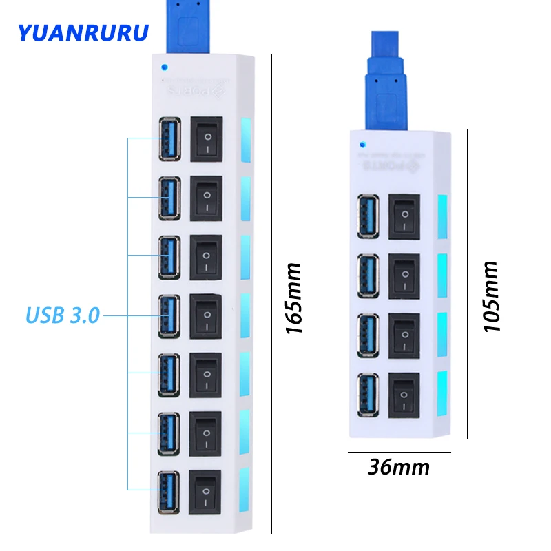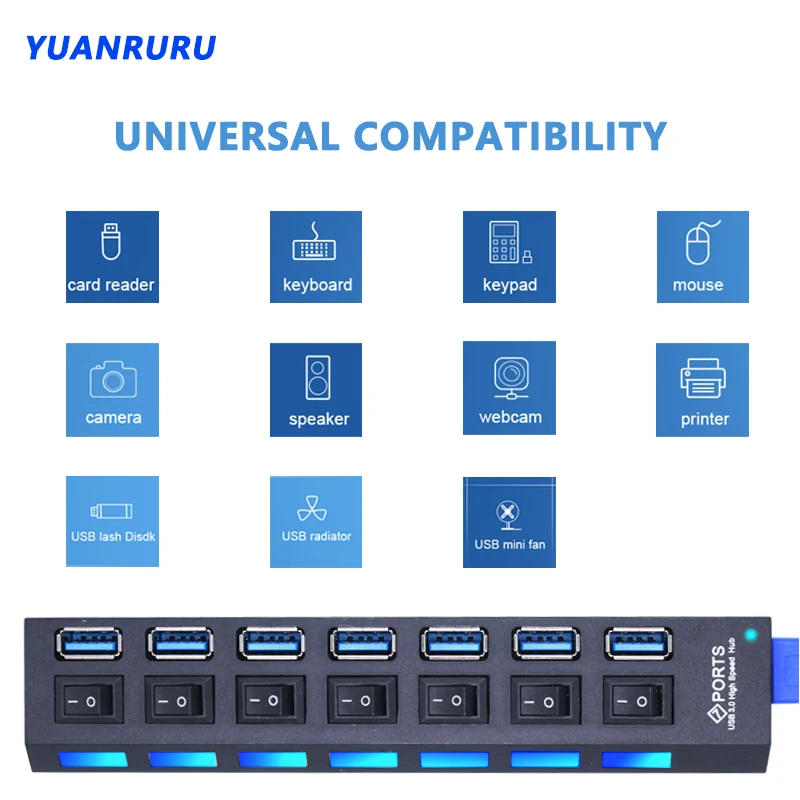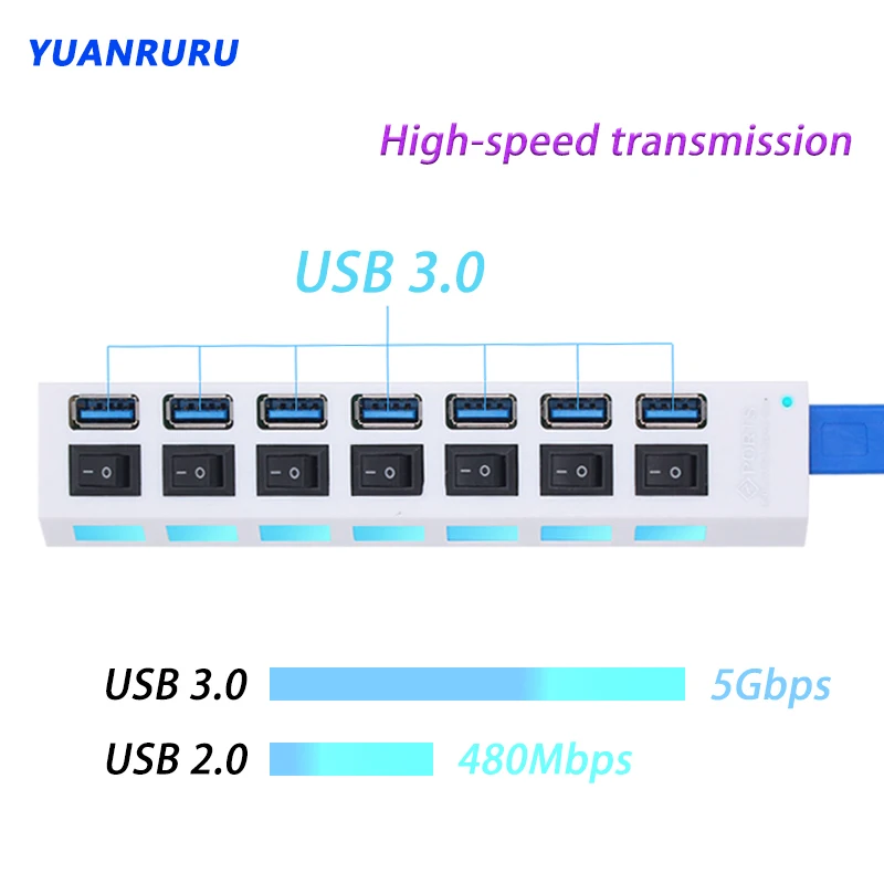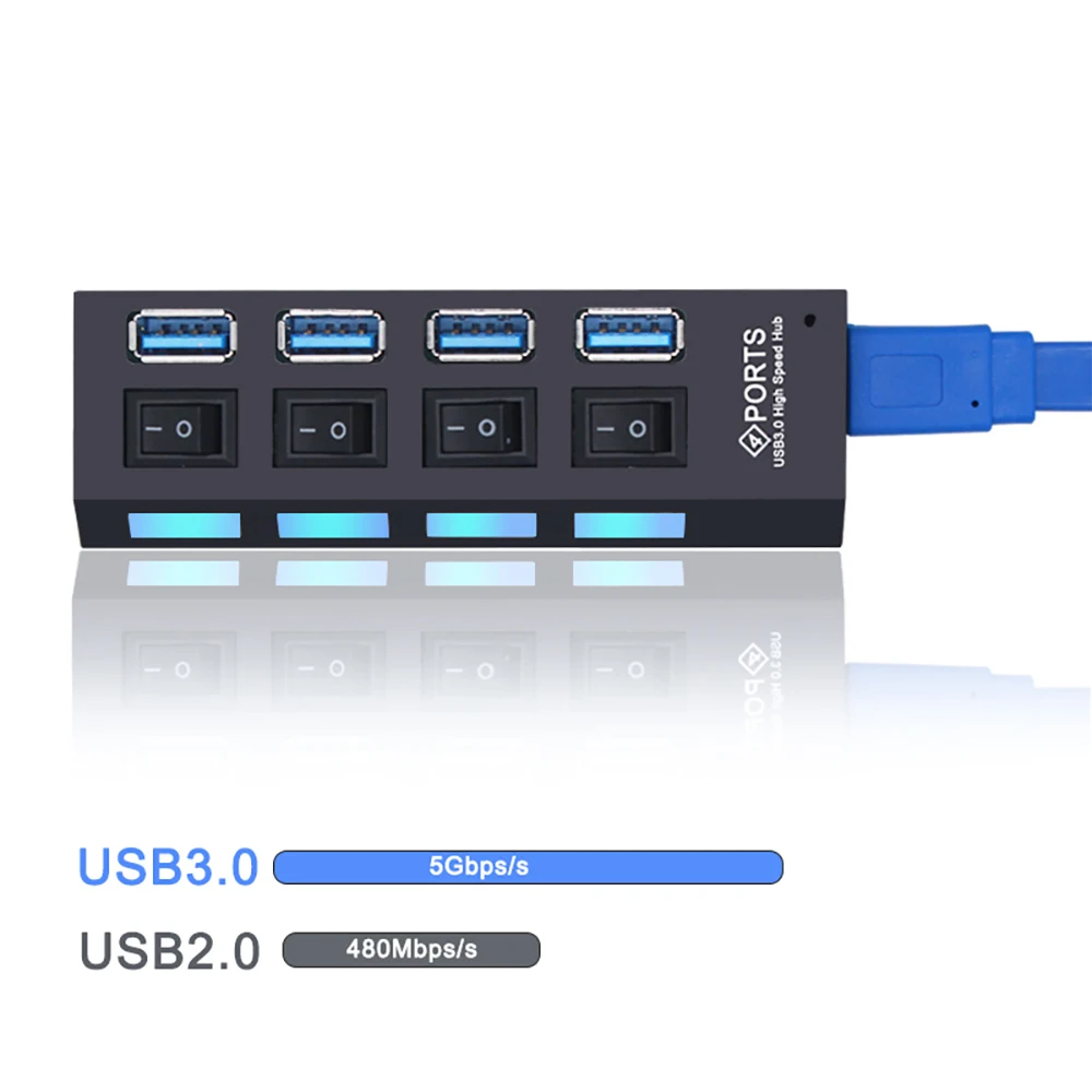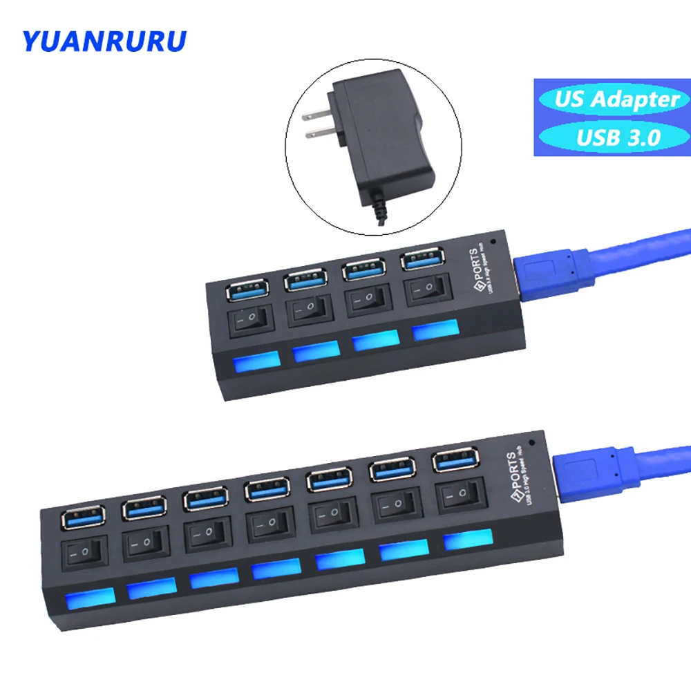 Hub USB 3.0 Hub de alta velocidad 4/7 puertos múltiples 3.0 interruptor de concentrador USB 3 uso de concentrador adaptador de corriente extensor USB para PC portátil