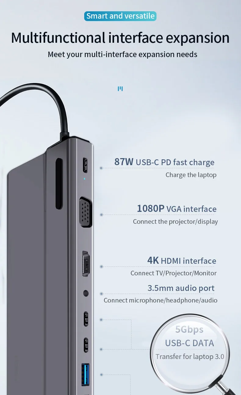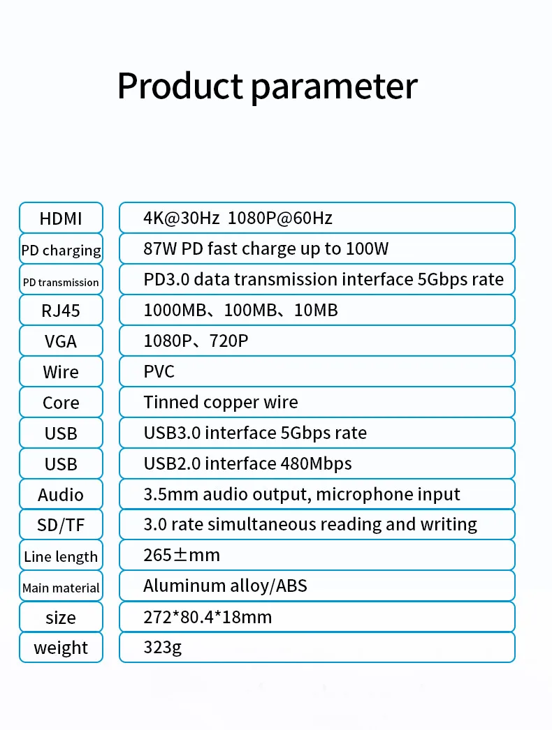 Comprar Hub USB 3,0 RJ45 con HDMI de alta velocidad, estación de acoplamiento, lector de tarjetas SD TF, 4K, 30Hz, PD100W, 5Gbps, para MacBook, Samsung y Xiaomi