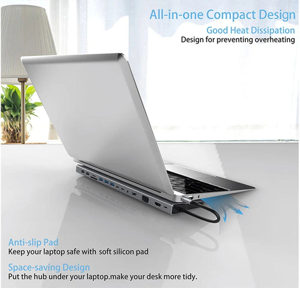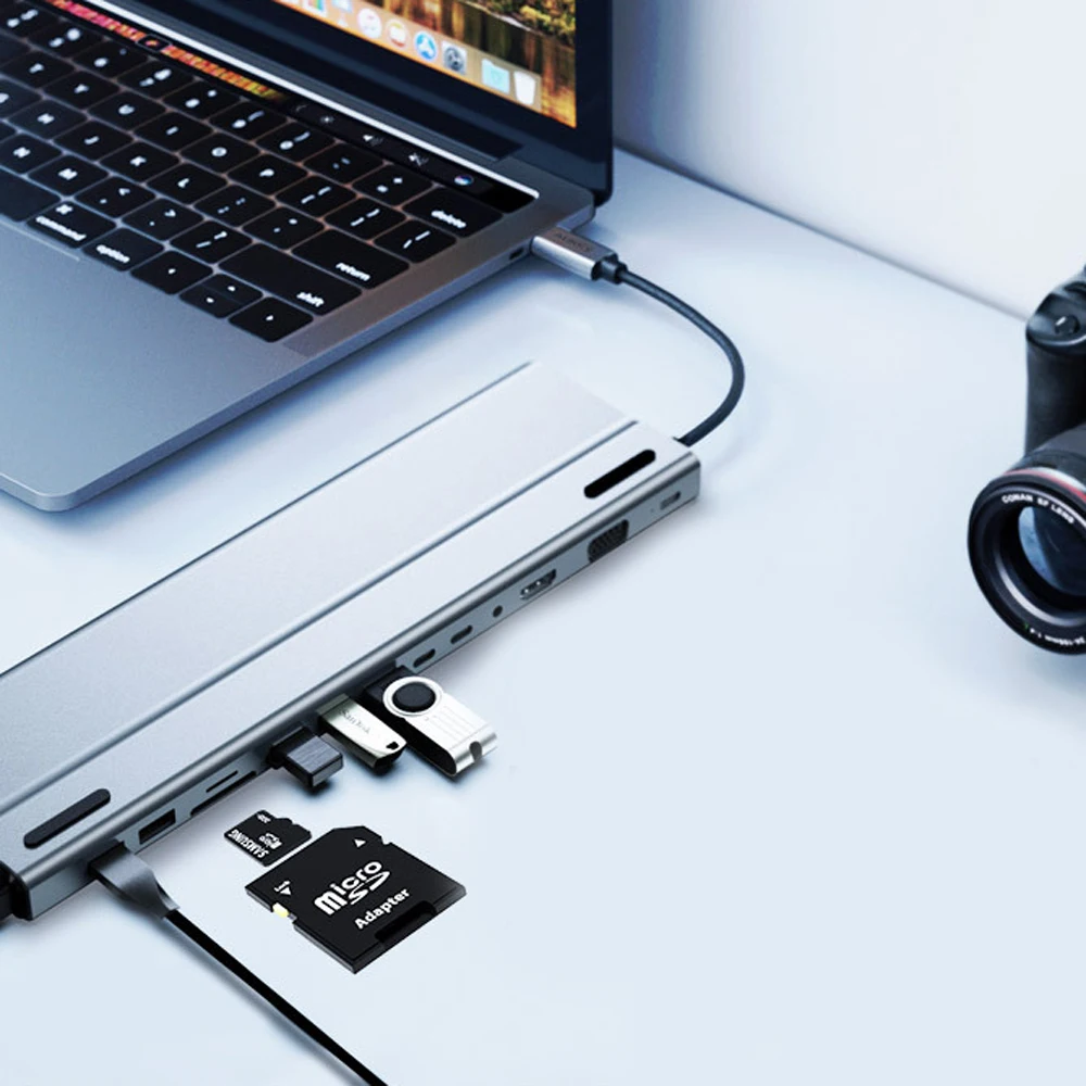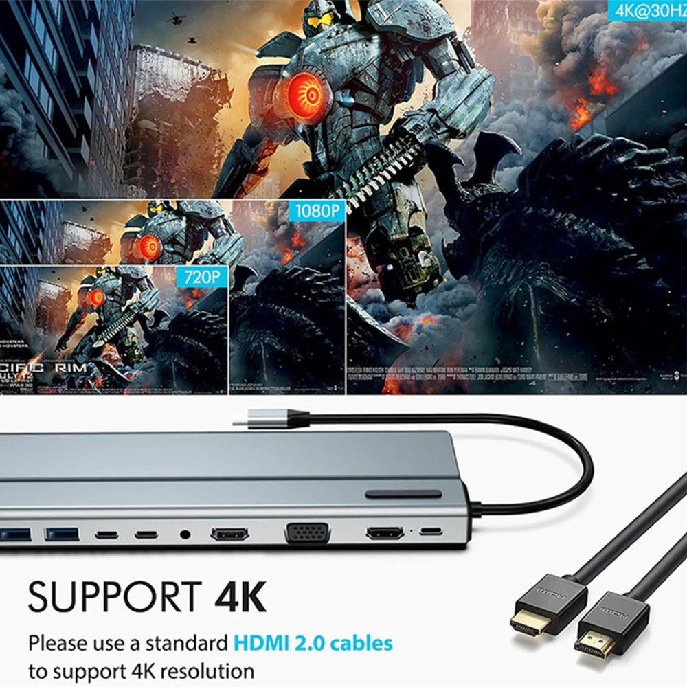 Comprar Hub USB 3,0 RJ45 con HDMI de alta velocidad, estación de acoplamiento, lector de tarjetas SD TF, 4K, 30Hz, PD100W, 5Gbps, para MacBook, Samsung y Xiaomi