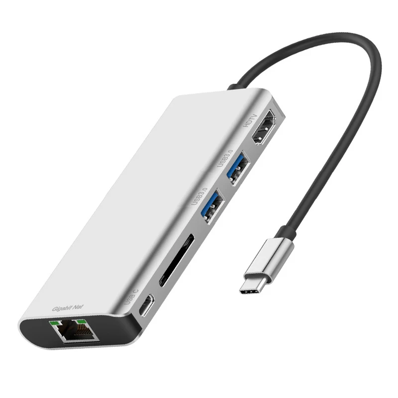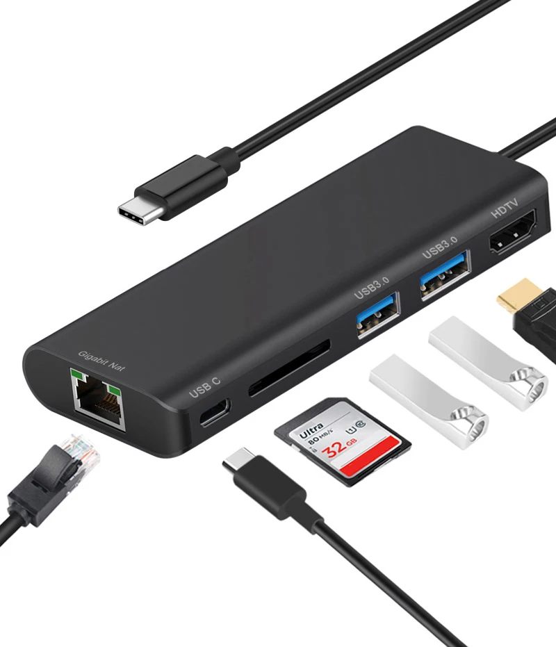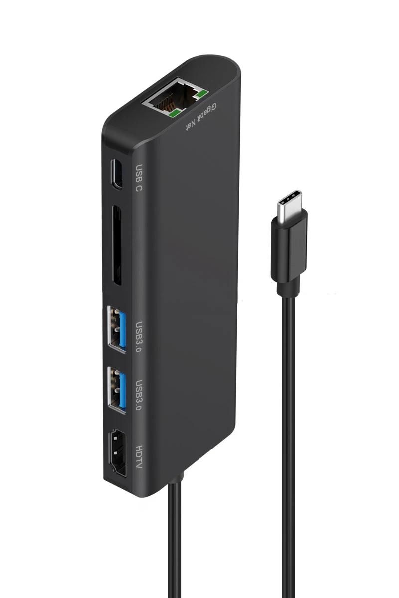 6 En 1 Tipo C a HDTV + 2 USB 3,0 + tipo C hembra + red Gigabit + ranura SD