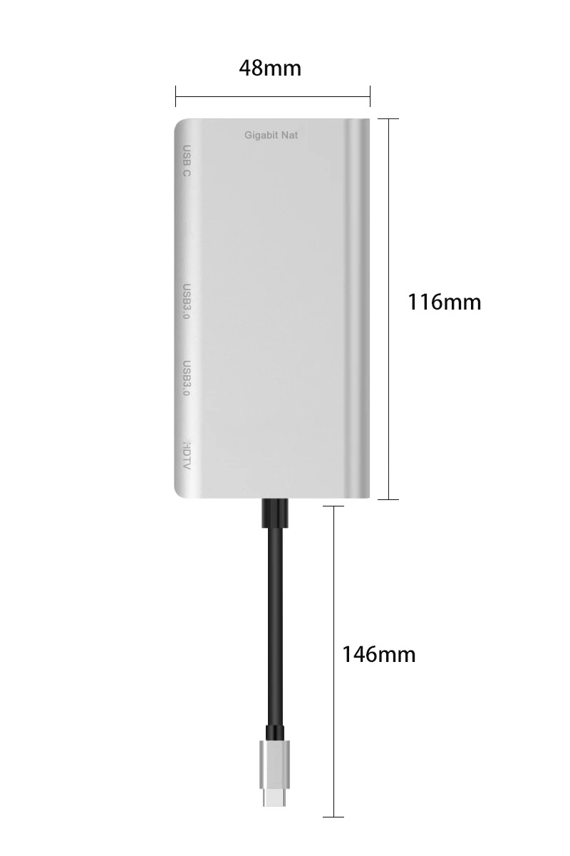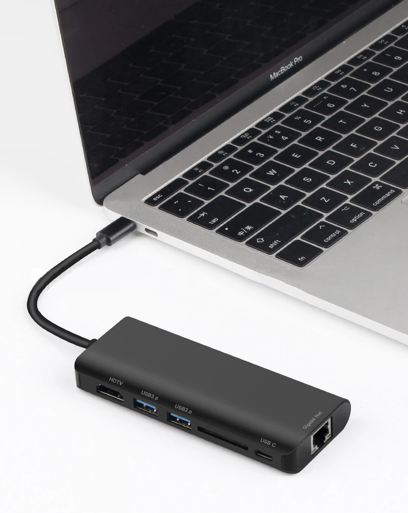 6 En 1 Tipo C a HDTV + 2 USB 3,0 + tipo C hembra + red Gigabit + ranura SD