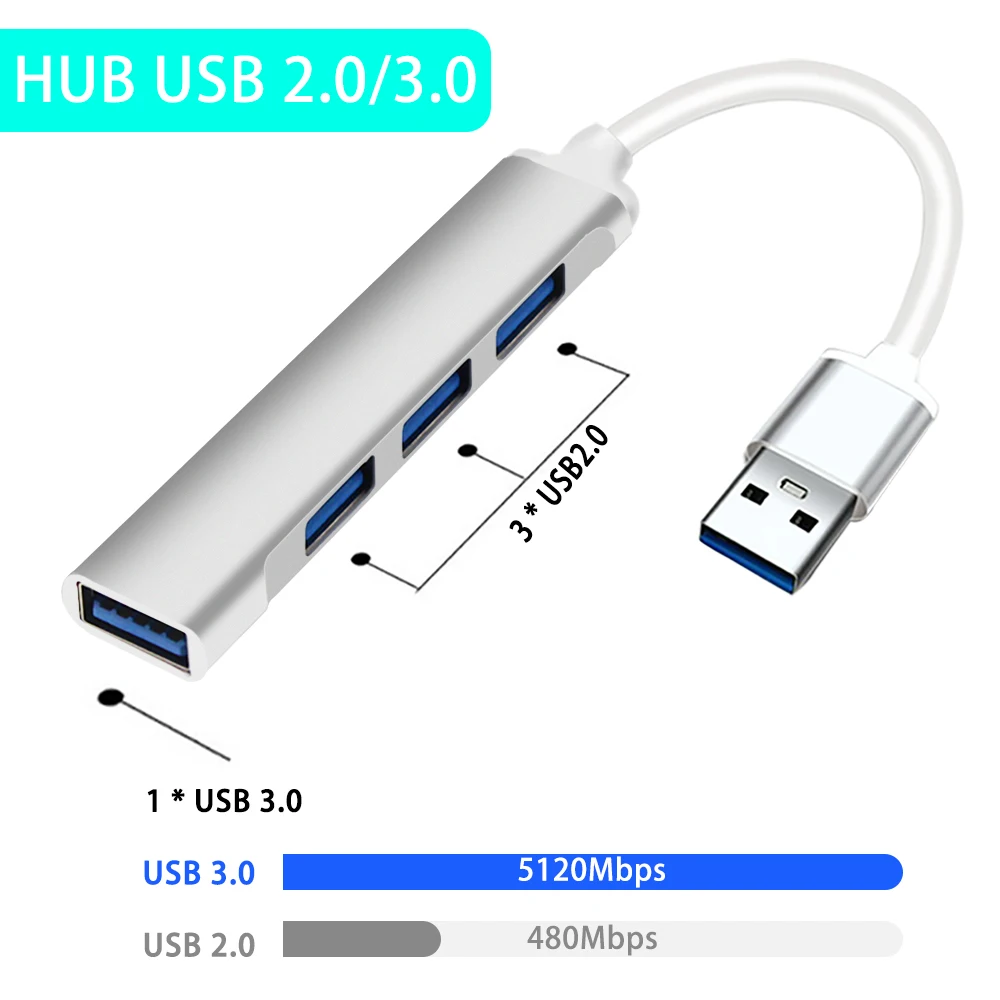 Comprar Hub USB 3,0 USB 3,0 HubB 4 puertos adaptador divisor multi-USB aleación de aluminio adecuado Lenovo Macbook para accesorios de ordenador PC