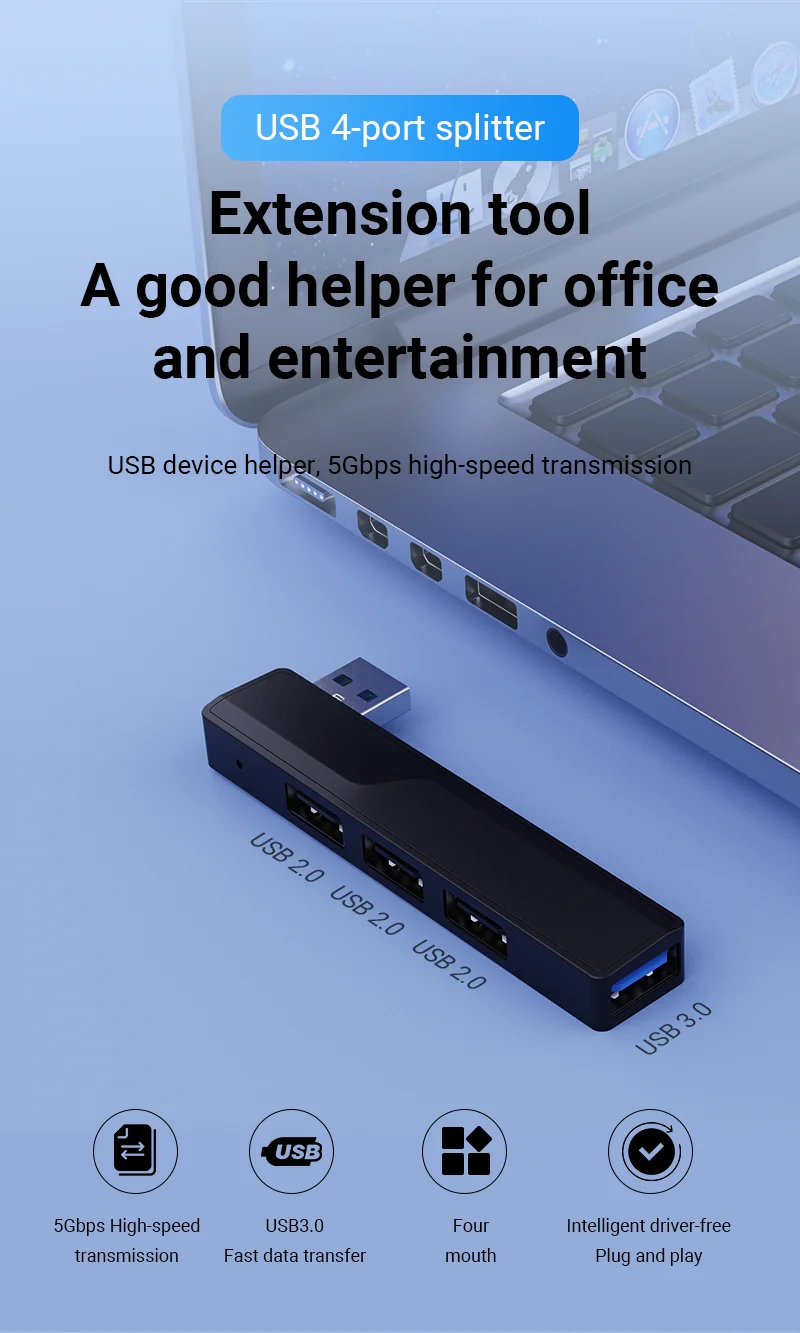 4 en 1 concentrador USB 3,0 divisor multipuerto USB 2,0 puerto Hub expansión transferencia rápida de datos 4 puertos para Mac PC impresora portátil HDD móvil